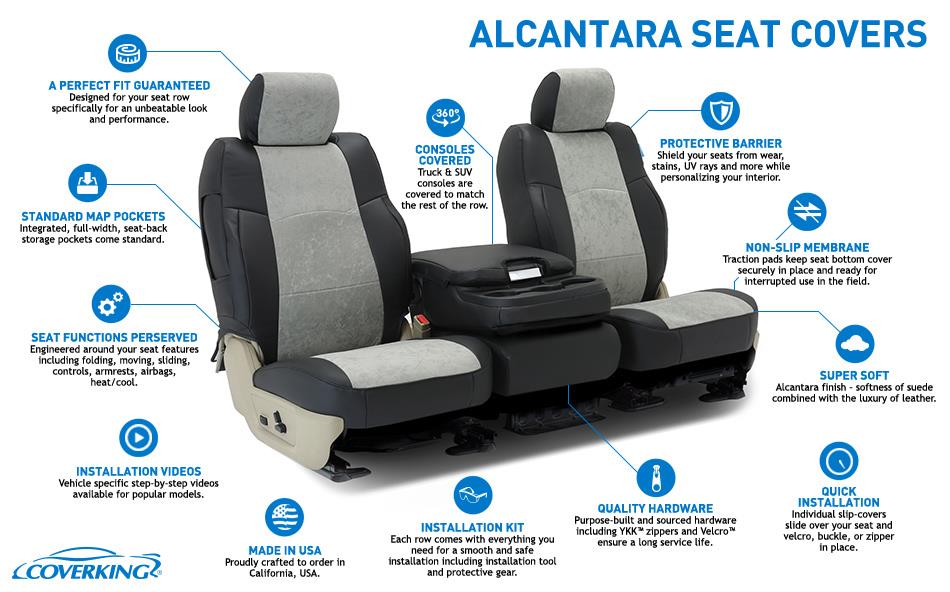 UltiSuede is a durable fabric made from a unique blend of polyester and polyurethane that is specially woven to create a soft and luxurious feel. Used in many high-end European vehicles, our UltiSuede seat covers are perfect for outfitting luxury cars for its style and elegance feel. We’ve combined center panels of this luxurious material with our well-dressed yet tough leatherette for a truly unique look. Our UltiSuede seat covers are soft to touch like suede but durable like leather.