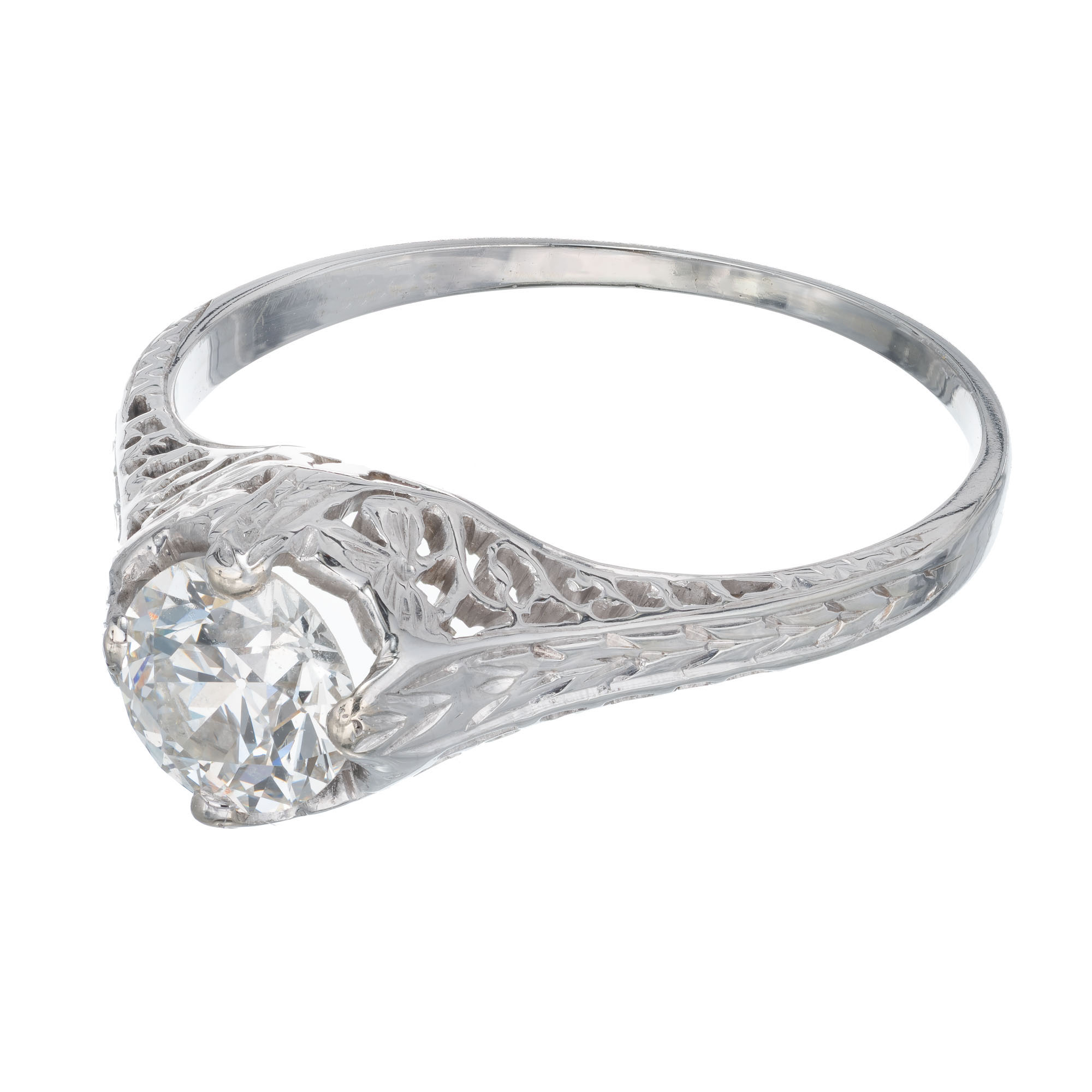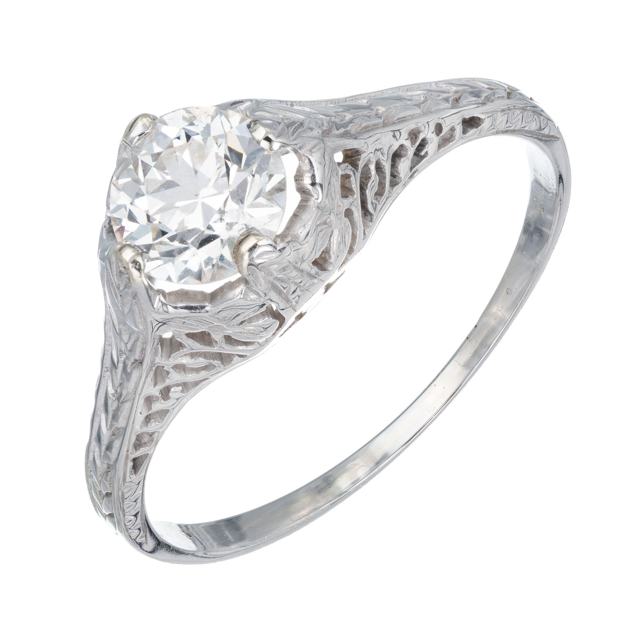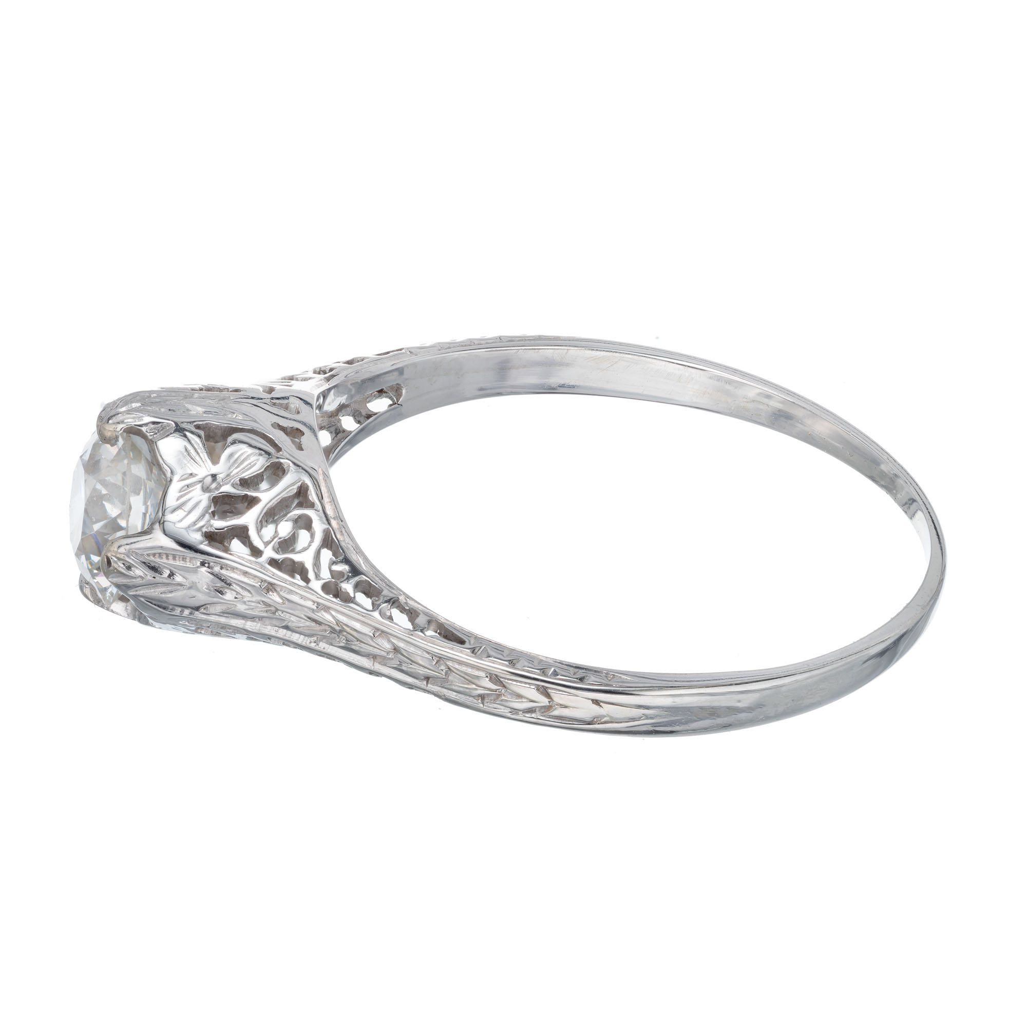 Estate old European cut .70 carat EGL Certified diamond 18kwhite gold filigree engagement ring