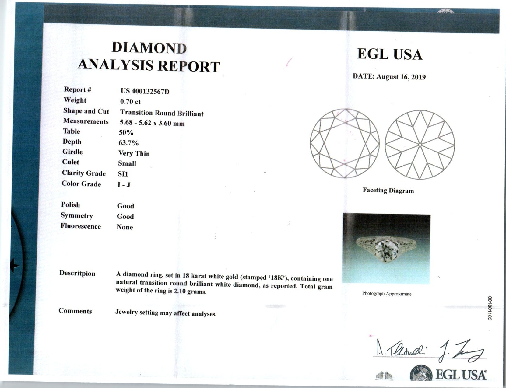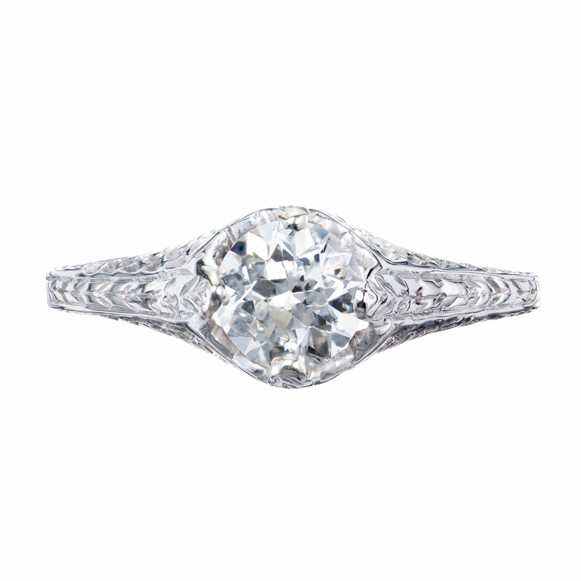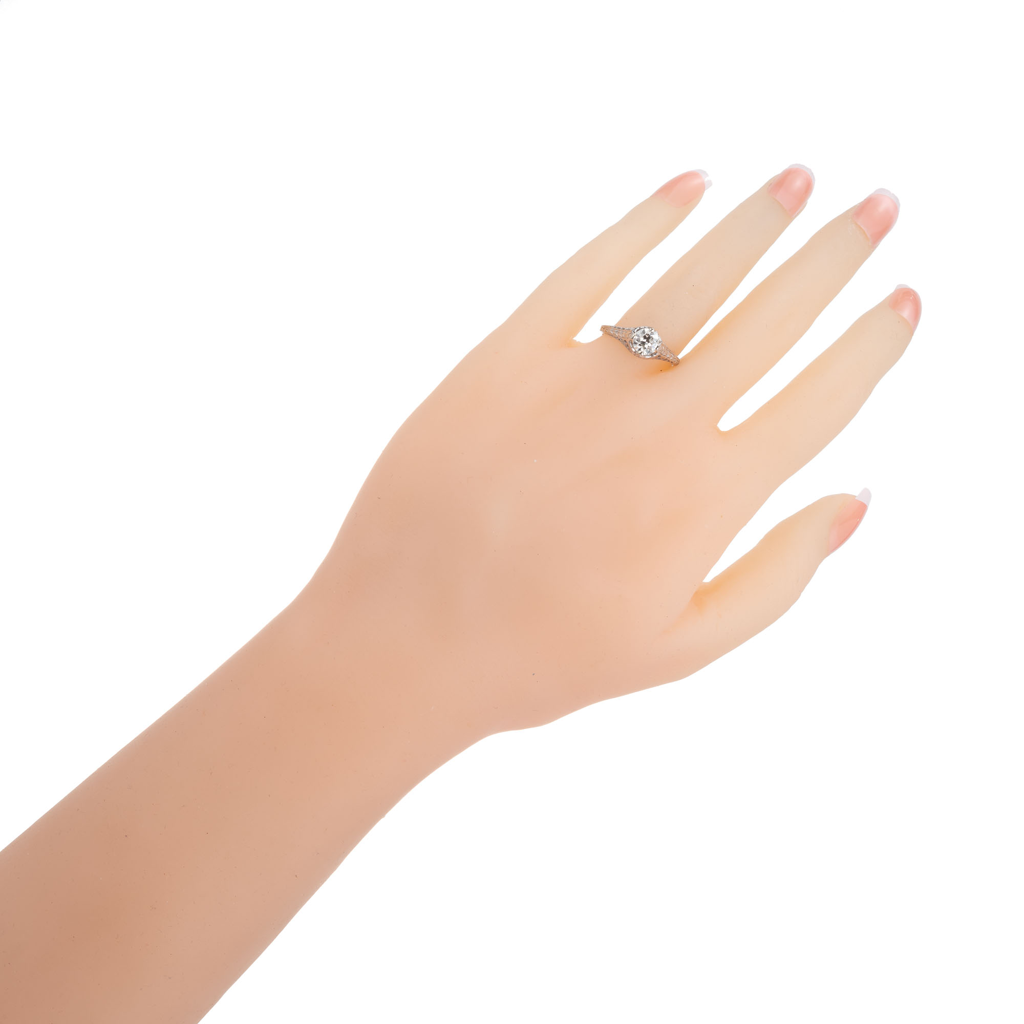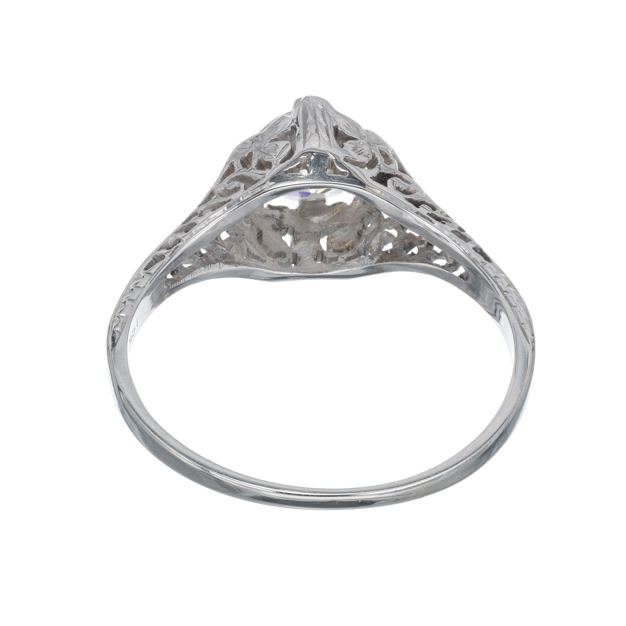 Estate old European cut .70 carat EGL Certified diamond 18kwhite gold filigree engagement ring