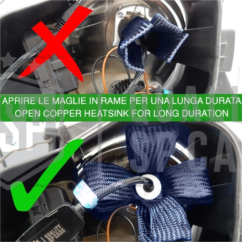 - IMPORTANTE: LA VITA DEL LED DIPENDE DALLE MAGLIE IN RAME: Aprire le maglie in rame il più possibile "a rosa" , espandendole anche in larghezza; non abbiate paura di forzarle.