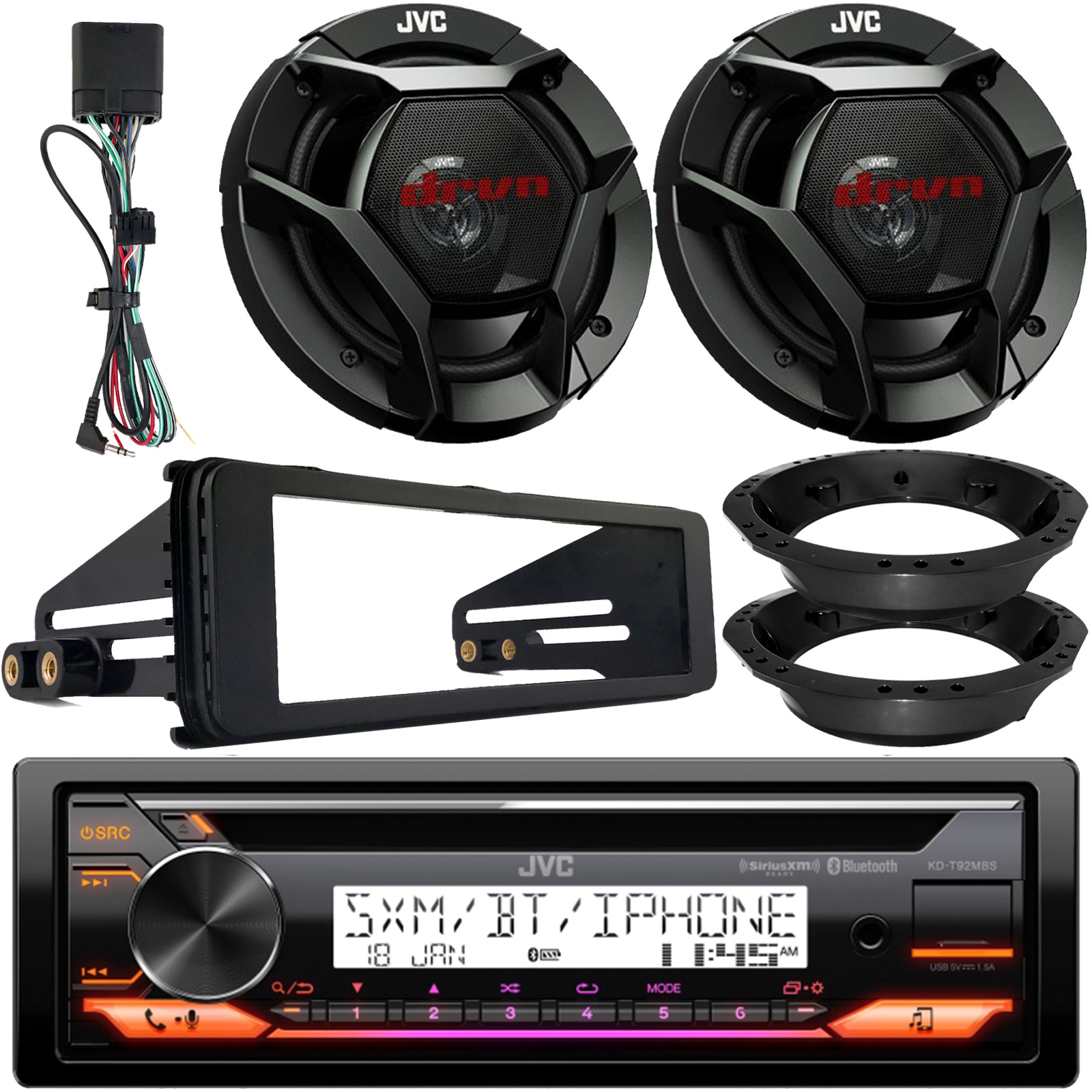 JVC KD-T92MBS Marine Bluetooth CD Player USB AUX Stereo Receiver with Radio Dash Kit for Select 98-13 Harley Davidson Motorcycles, 2x 6.5" 2-Way Coaxial 300W Max Speakers with Mounting Adaptors