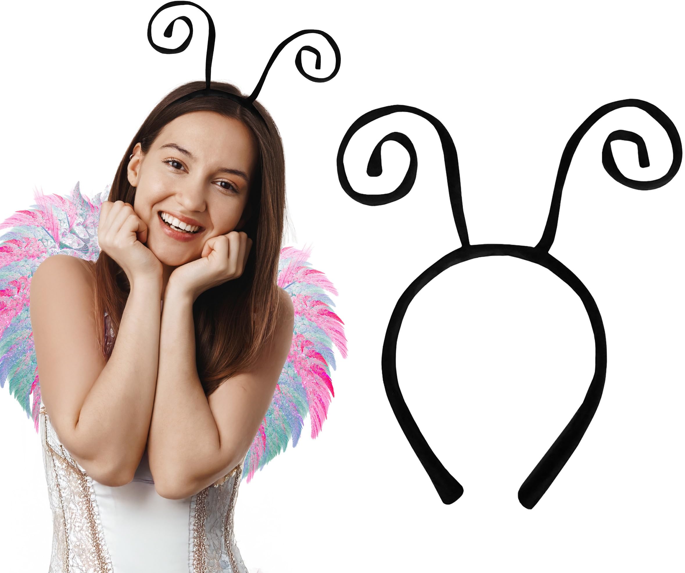 Imagination has no age or limits. This Halloween transform yourself into a beautiful Butterfly or a Buzzing Bumble Bee with this Black Velvet Bug Headband. Perfect for many insect costumes, from ladybug, firefly, caterpillar, ant and more! This black headband is lightweight and comfortable to wear with a velvet polyester fabric. With a wire structure inside, the antennae can be bent and positioned in any way you like; curled, straight, pointing backwards or forwards. Head band is 5 inches tall. Depending on the style of antenna you make, they stand fully straight at 11 inches tall. Great for Adults and Teens! Add this black antenna headpiece to your tutu and/or wings for a quick and easy costume idea. Headband Only. For ages 14 and up.