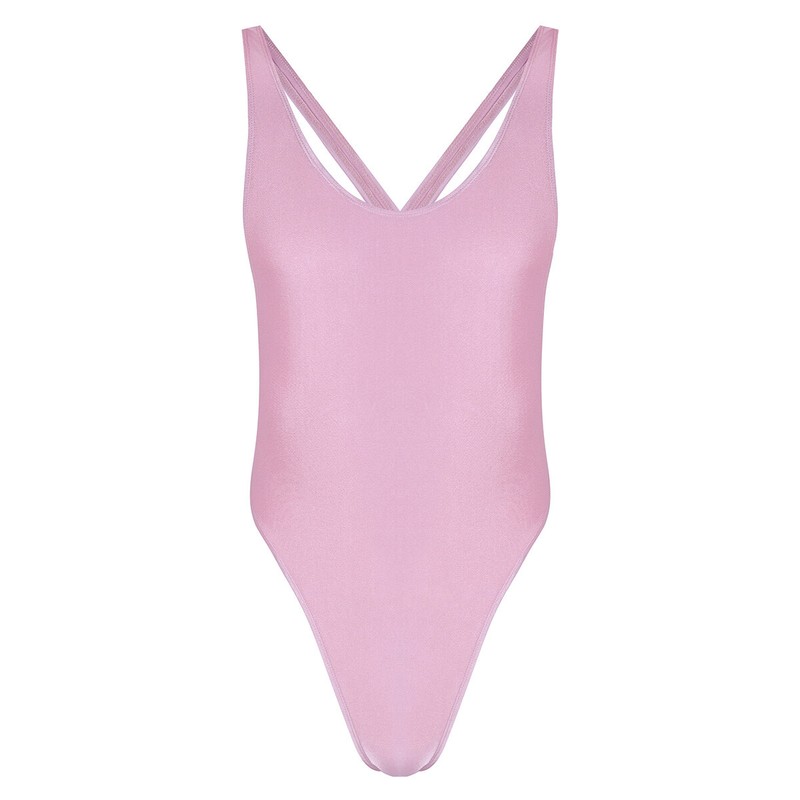 Sleeveless and deep U neckline, criss-cross backless and high cut design.