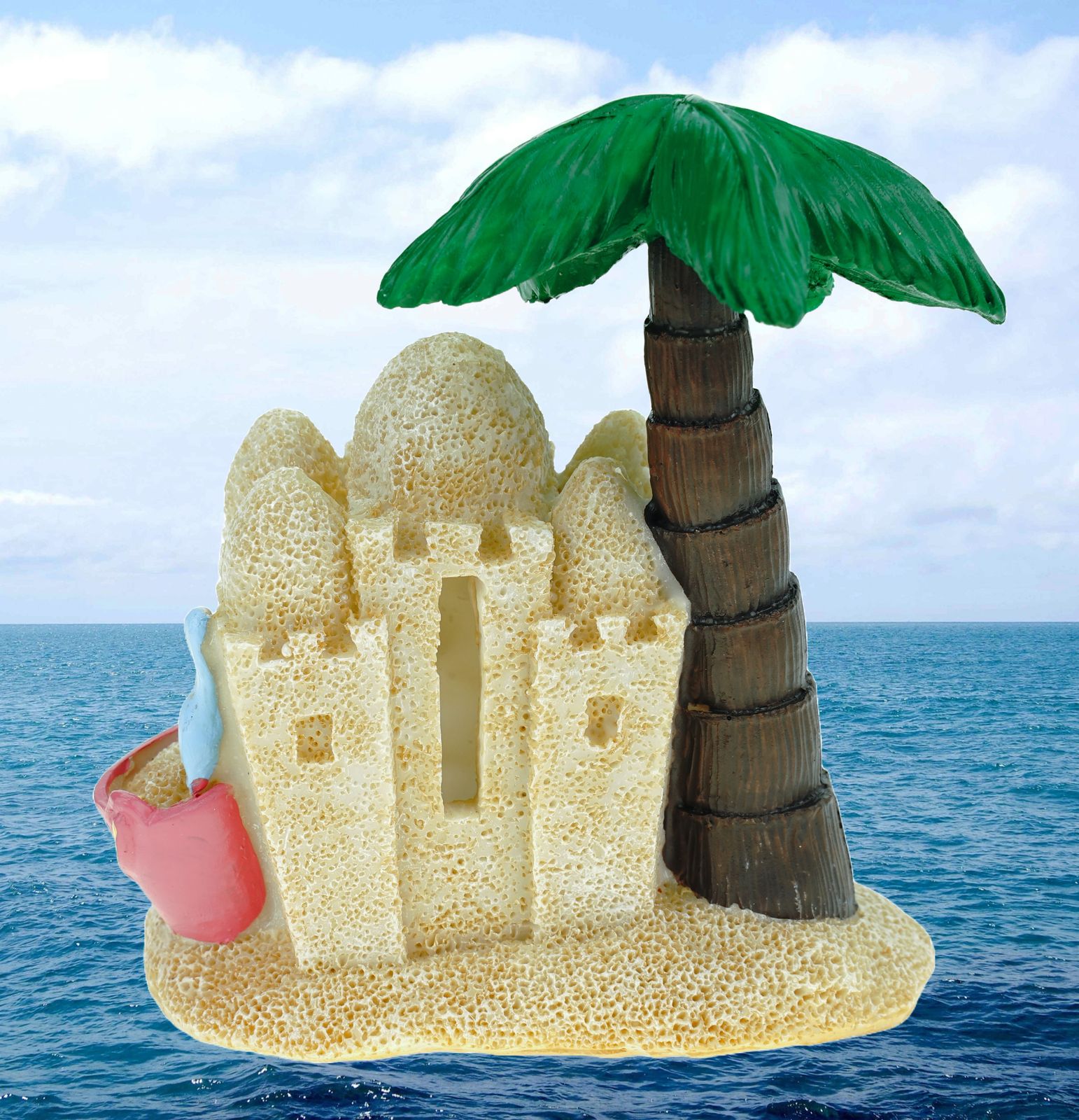 - URLAUBSTRÄUME SPAREN: Kompakte kleine Spardose in Inselform mit Sandburg, ideal zum Ansparen für Sonnenurlaub, Strand- und Palmen-Abenteuer.