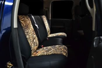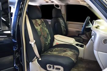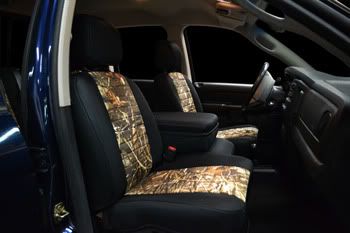 This highly water resistant seat cover is made from Black Neoprene fabric on the outsides with a camouflage center for those who like camo patterns but want to maintain that sporty look. The camo center is made from a treated cotton blend with a 3/8 inch quilted foam backing for strength and durability.