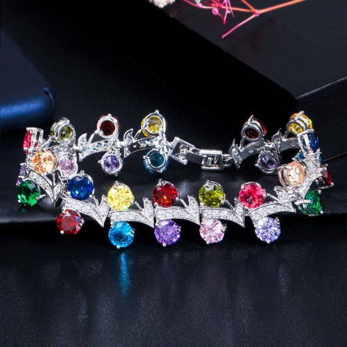 Gorgeous Round Colorful Cubic Zirconia Dancing Party Bracelets for Women Jewelry