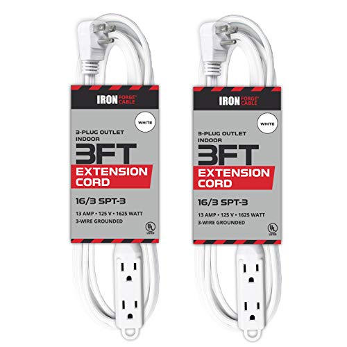 Iron Forge Cables' 3 Ft Extension Cord is the perfect power cable for all your home electrical needs. It offers durable strain relief for optimal performance, and a 3 prong grounded molded male plug for added safety. The cord's 3 foot length gives you great reach across any room in your house. UL Listed.