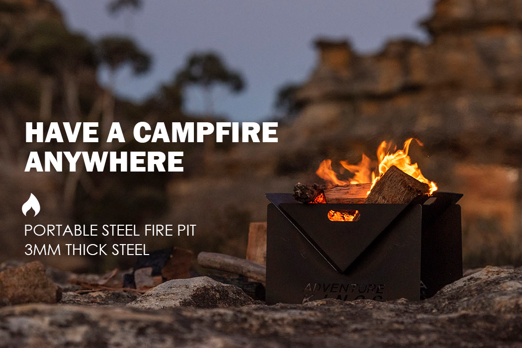 Have a campfire anywhere in seconds with the easy to set up Adventure Kings portable steel fire pit.