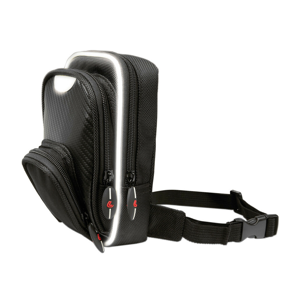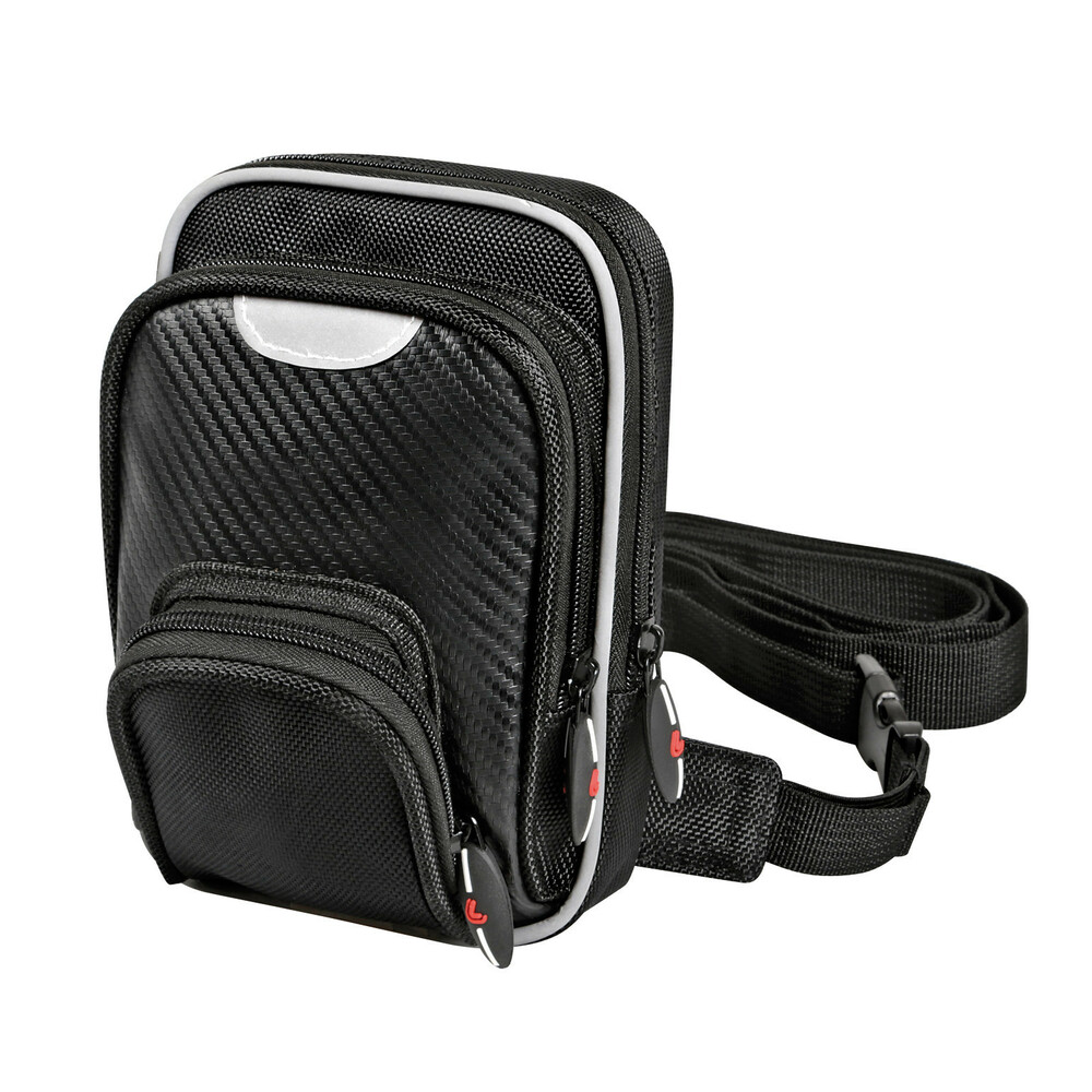 Borsello da gamba, pratico e leggero per il trasporto di oggetti di piccole dimensioni. Zip con tiretti gommati. Doppia regolazione tramite cinghie, in vita e alla coscia. Profilo riflettente. 3 scomparti. Copertura antiacqua in dotazione. Poliestere 1680D. Misure:12x18x10cm