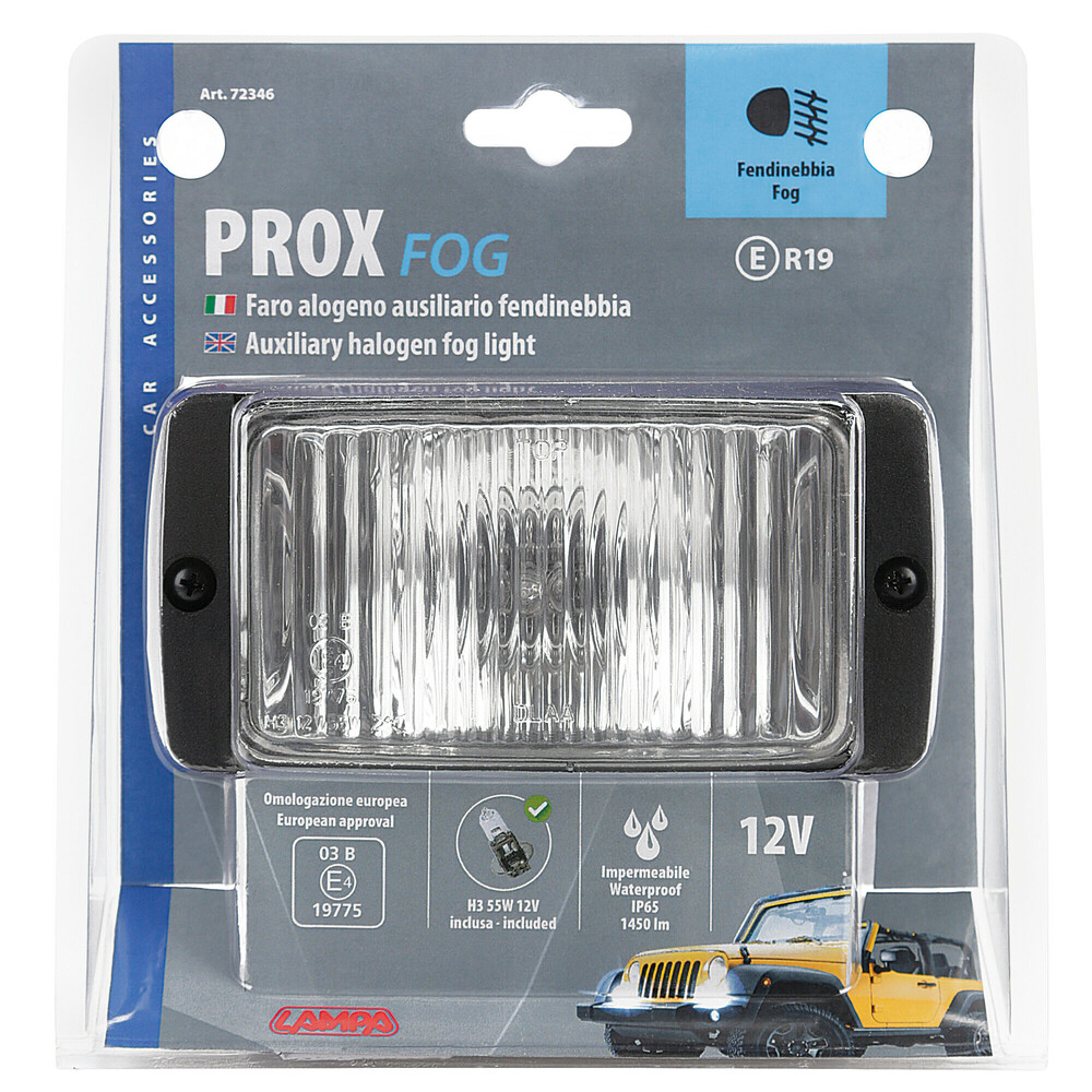 Faro ausiliario FENDINEBBIA. Colore fascio: Bianco/Trasparente. Funziona con una lampadina H3 12V 55W max. Lampadina NON INCLUSA. Omologazione: E. Misure: 147mm (larghezza) x 100mm ( altezza ) x 75mm (profondita').