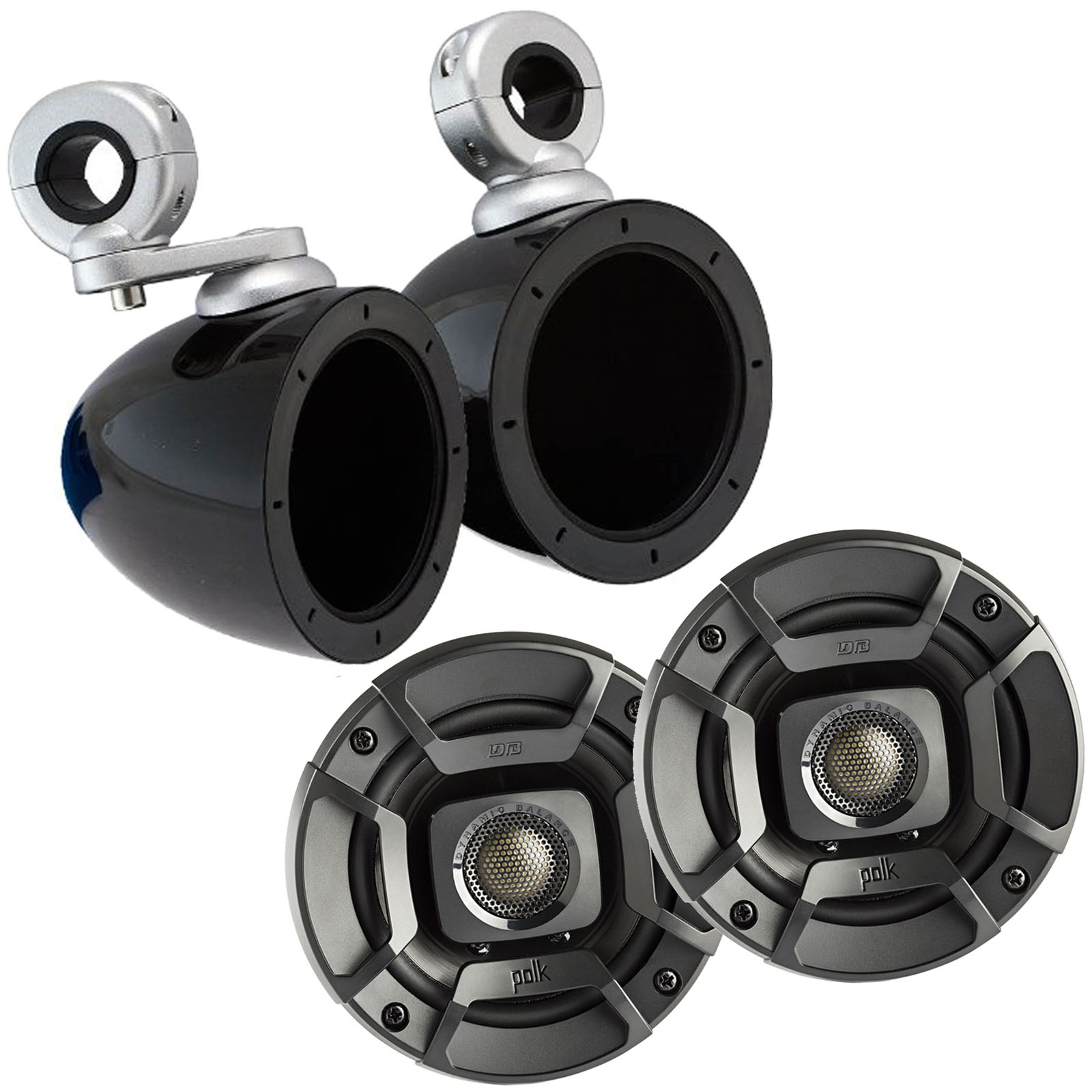 Polk Audio DB402 DB+ Series 4" 135 Watt Max 2-Way Marine Coaxial Speakers (Pair) with Kicker 40KMMTES 4" Mini Black Tower Enclosures