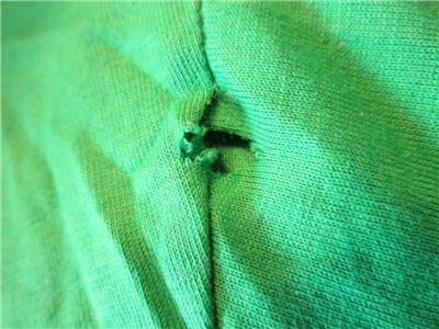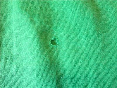 These shirts have a hole or tiny clustered holes. Several examples have been photographed.