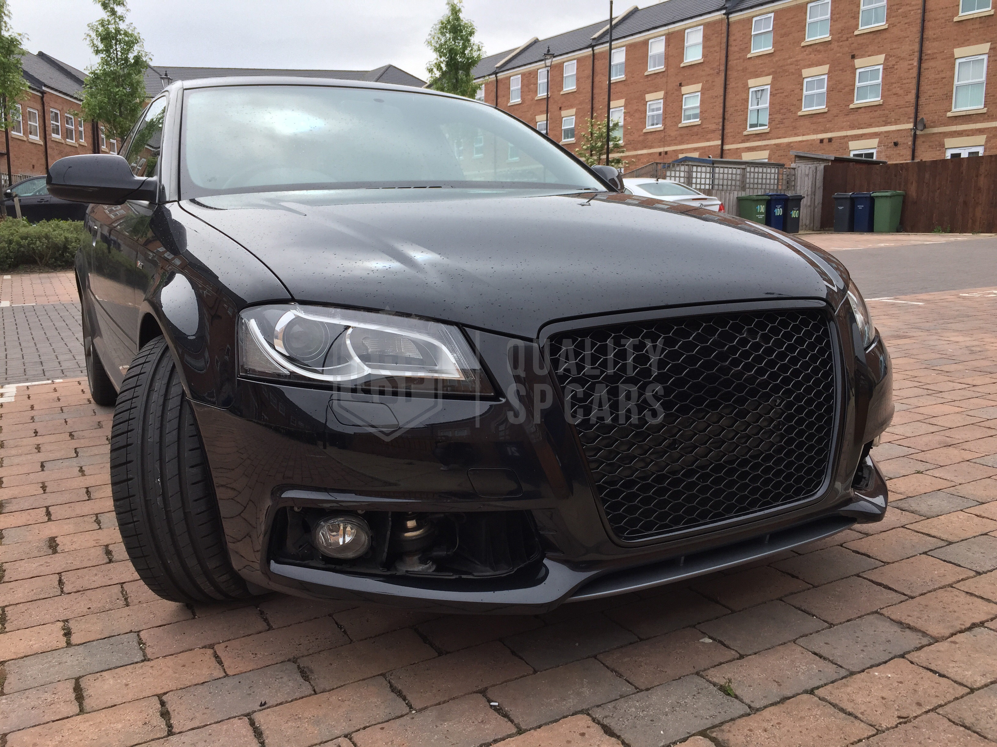 CALANDRA ANTERIORE PER AUDI A3 RS3 8P Restyling (08-12) GRIGLIA A NIDO D' APE NERO LUCIDO IN ABS