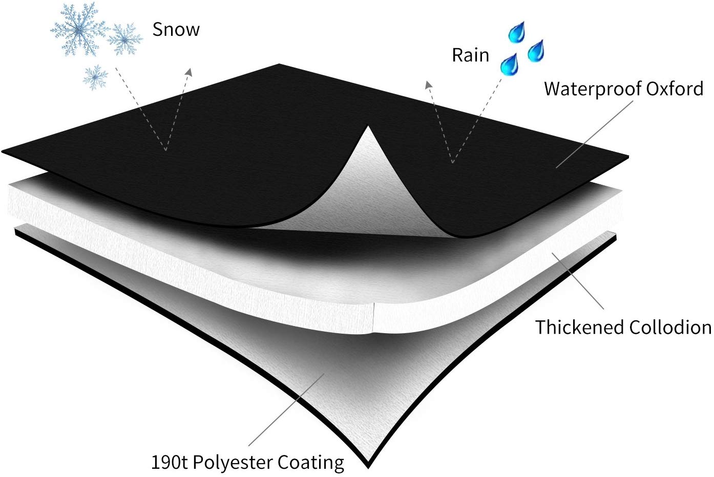 Thickened Material - Waterproof breathable oxford fabric protection on the outer surface, and the middle was filled with collodion, surface is coated with waterproof coating