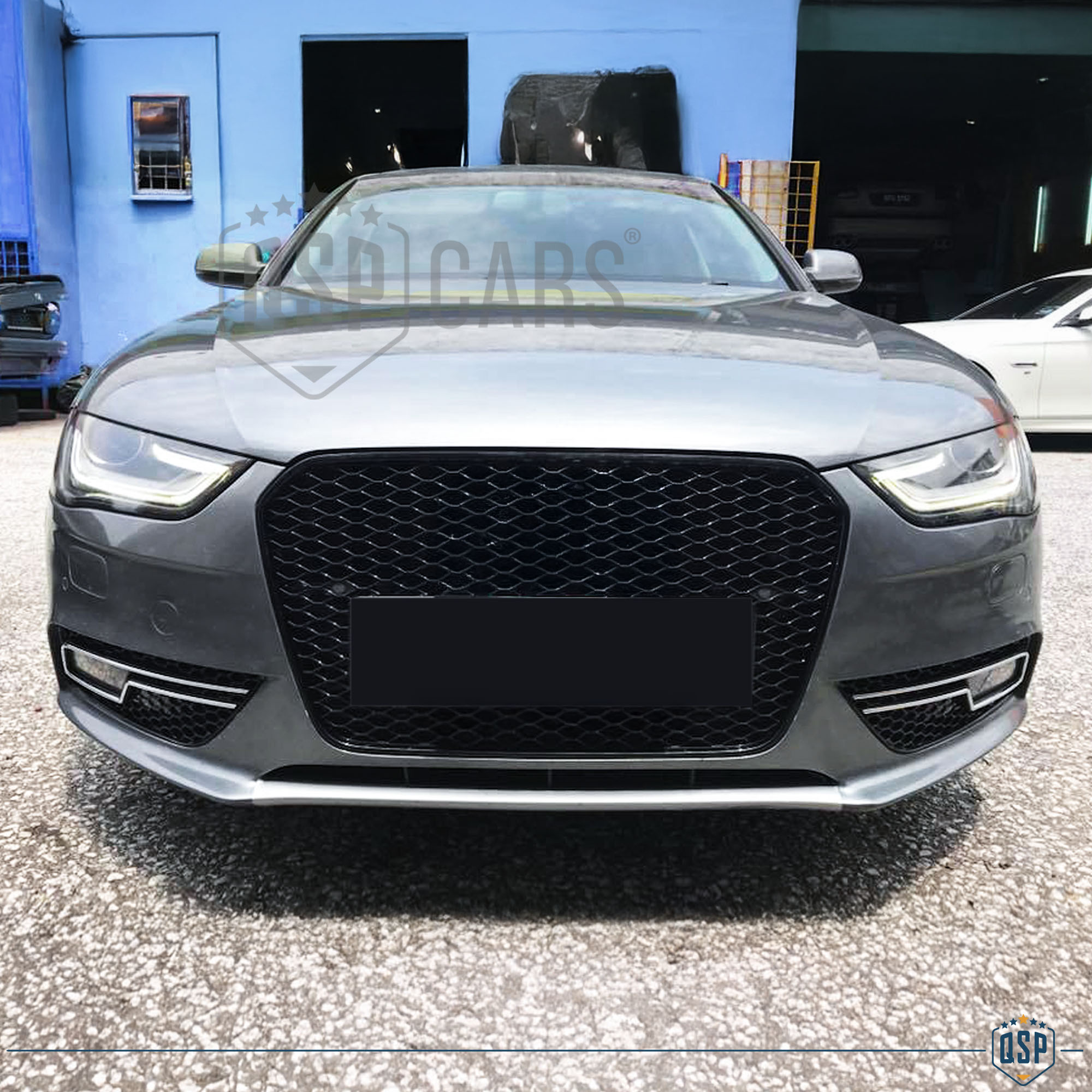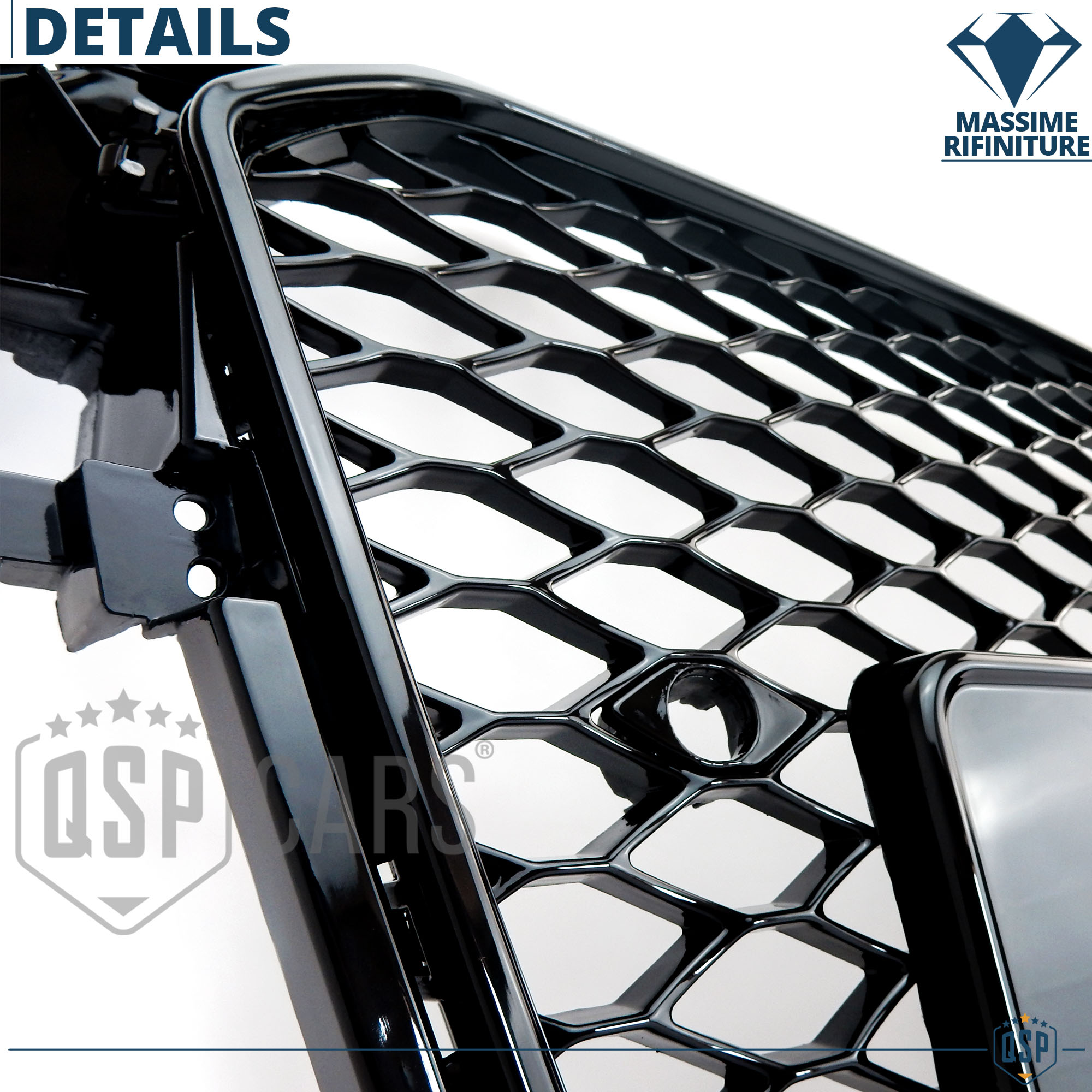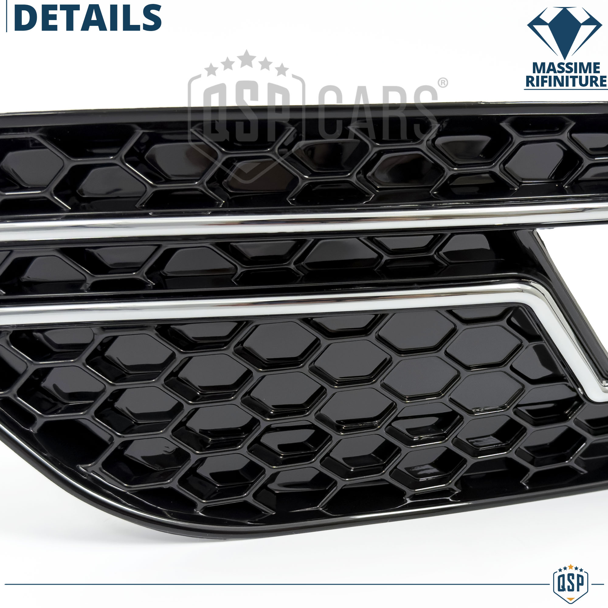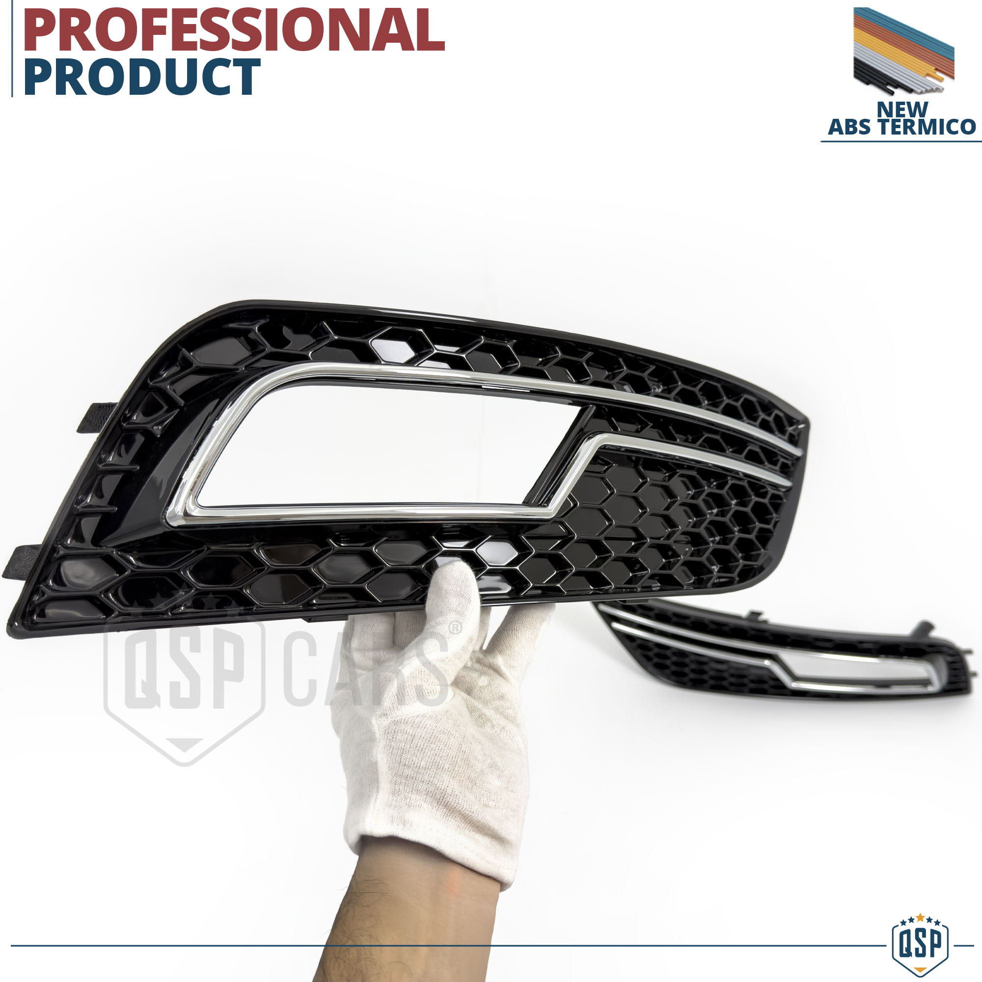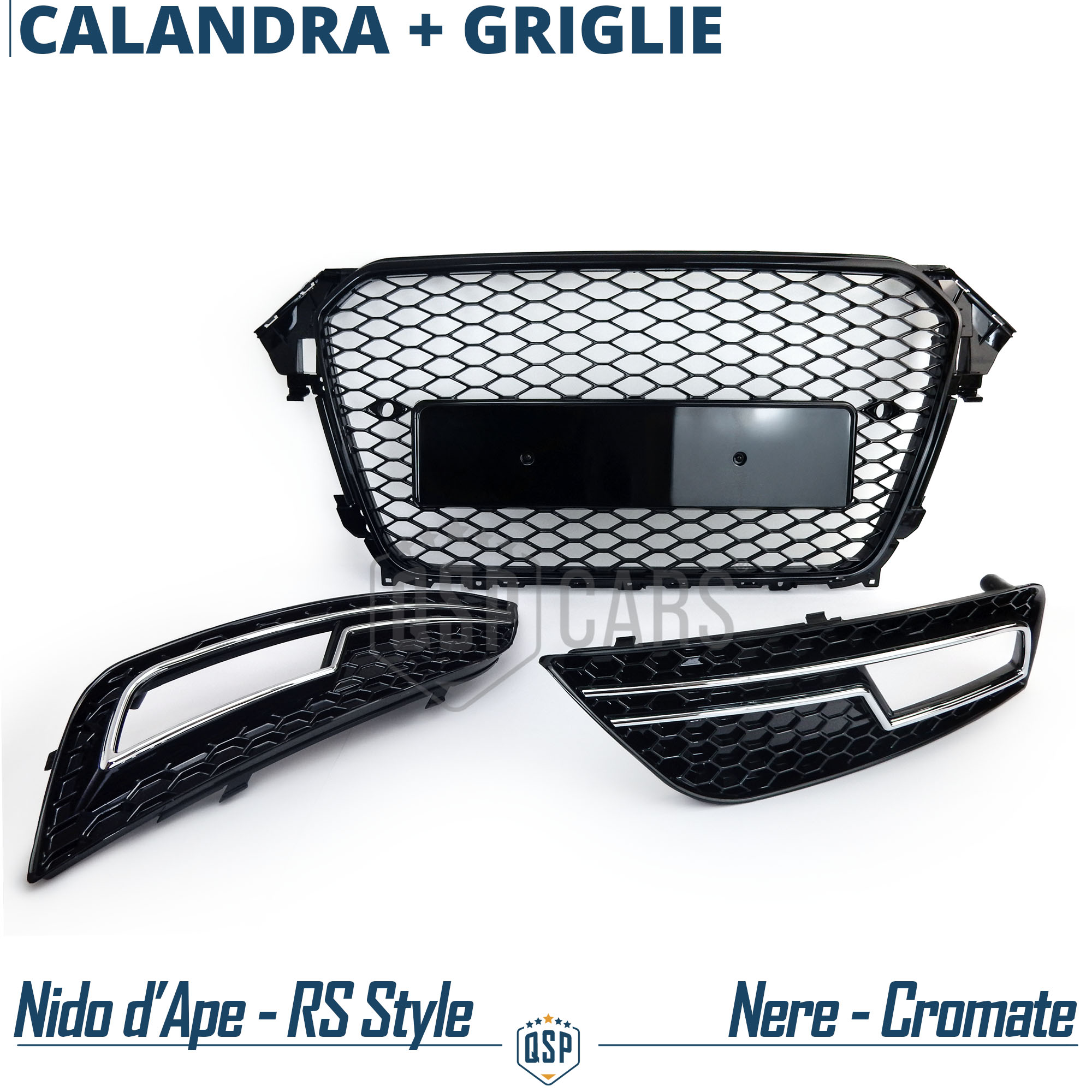 CALANDRA ANTERIORE + GRIGLIE FENDINEBBIA PARAURTI ANTERIORE PER AUDI A4 RS4 B8 Restyling (11-15) GRIGLIE A NIDO D' APE NERO LUCIDO IN ABS