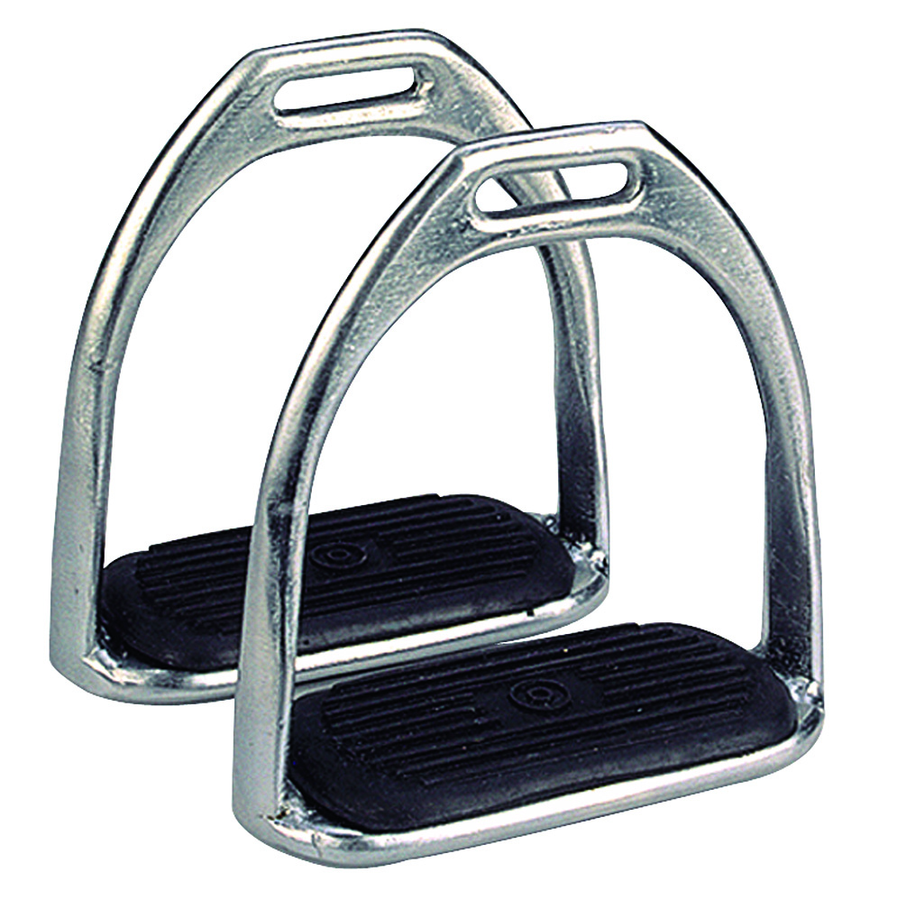 Steigbügel mit schwarzen Gummieinlagen. Für Pony und Großpferd geeignet.