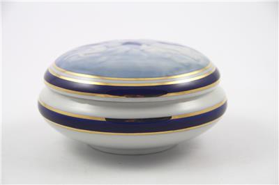 Measures approx. 5" across, 2 3/4" high to the top of the lid