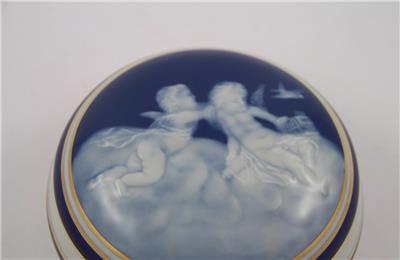 Beautifully decorated with cherub motif accented with several gold bands