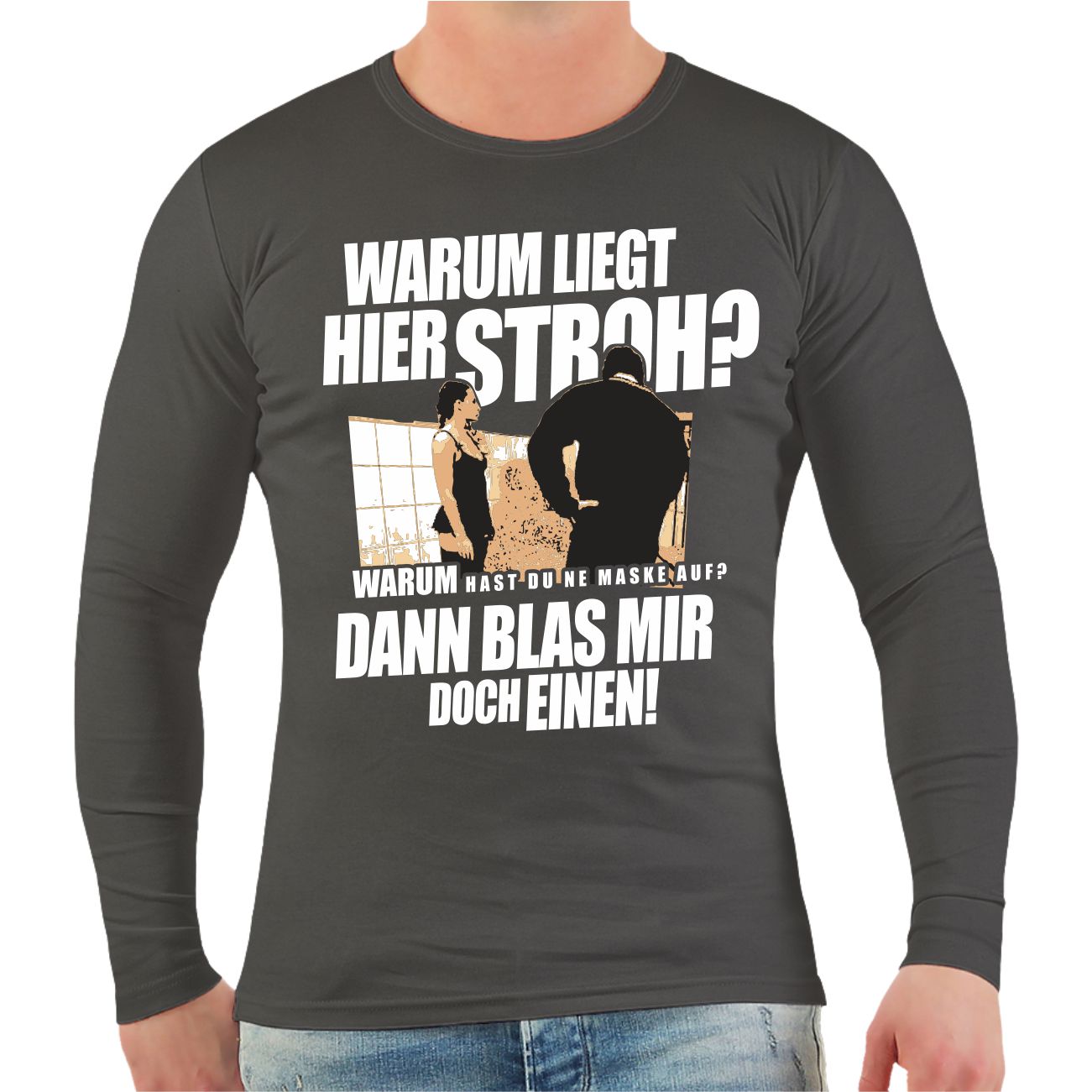 Männer Longsleeve Warum liegt hier Stroh Warum hast du eine Maske auf