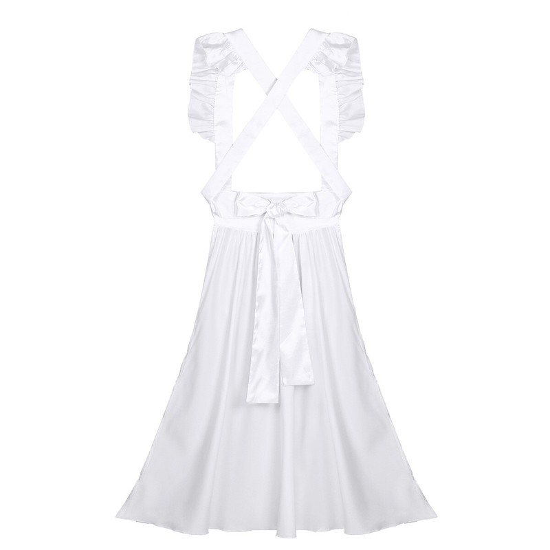 Matching a satin apron tie at waist and a ruffle choker. High quality fabric, very soft and comfortable to wear, smooth touch feeling.