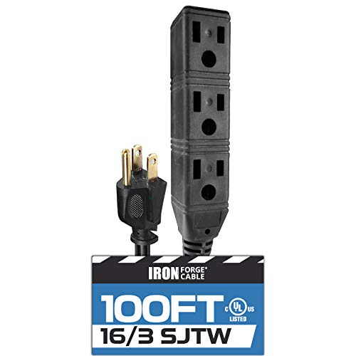 Iron Forge Cables 100 Ft Extension Cord is the perfect power cable for all your electrical needs. It offers durable strain relief for optimal performance, and a 3 prong grounded molded male plug for added safety. The cords 100 foot length gives you great reach. UL Listed.