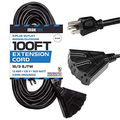 Iron Forge Cables' 100 Ft Outdoor Extension Cord is the perfect power cable for all your outdoor electrical needs. It offers durable strain relief for optimal performance, and a 3 prong grounded molded male plug for added safety. The cord's 100 foot length gives you great reach across your garden. UL Listed.