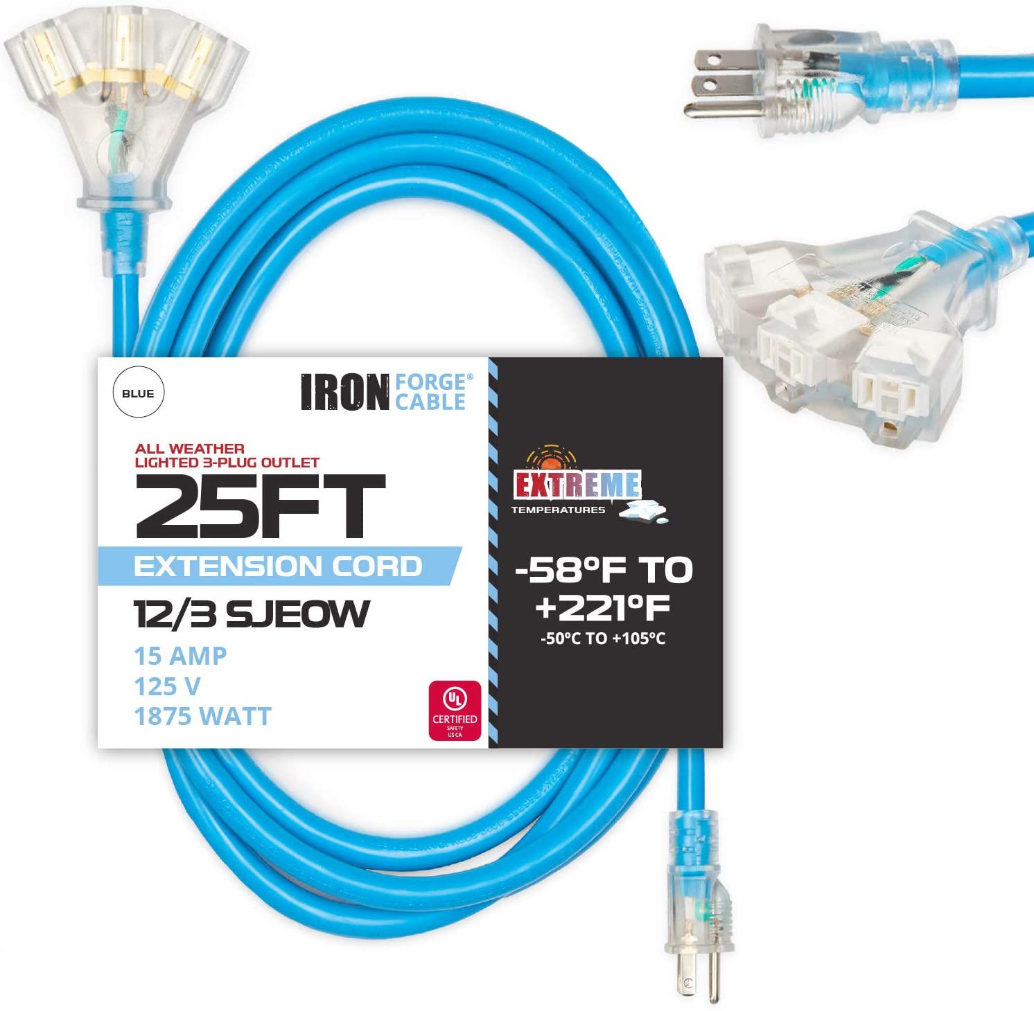 This cold weather extension cord can handle temperatures as low as -58°F and as high as +221°F, all while remaining flexible and working without interruption.