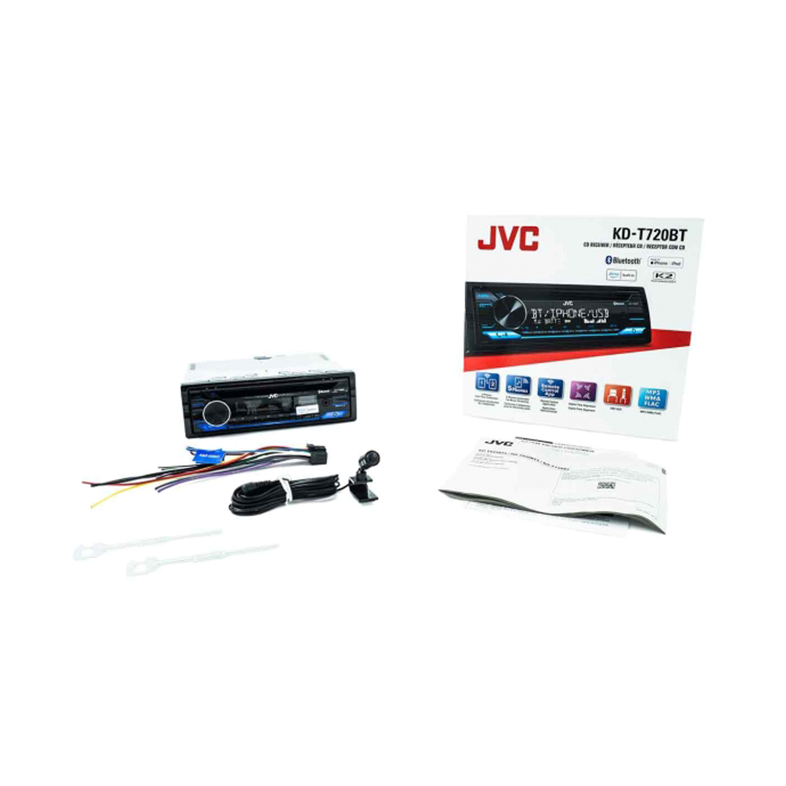 Take your vehicle's infotainment system to the next level with this JVC KD-T720BT multimedia receiver system! This receiver features an array of features to expand your media possibilities, including CD playback, Built-In Bluetooth, USB/AUX inputs for smartphone connection, and Built-In Amazon Alexa for seamless voice control. With 2 Phones Full-Time Connection you can connect two phones full time via Bluetooth, with secure and simple pairing. Calls to either phone can be received by the push of a key on the receiver. You can even use the remote control app to control the receiver directly from your smartphone!