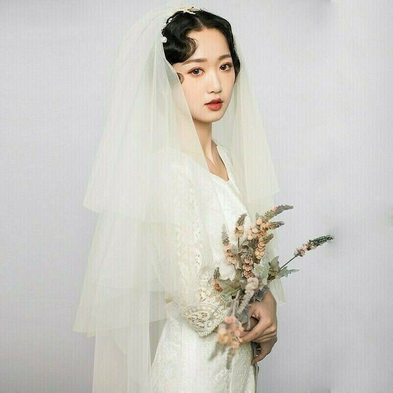 Wedding White Bridal Veil Double strati con accessori per coppia