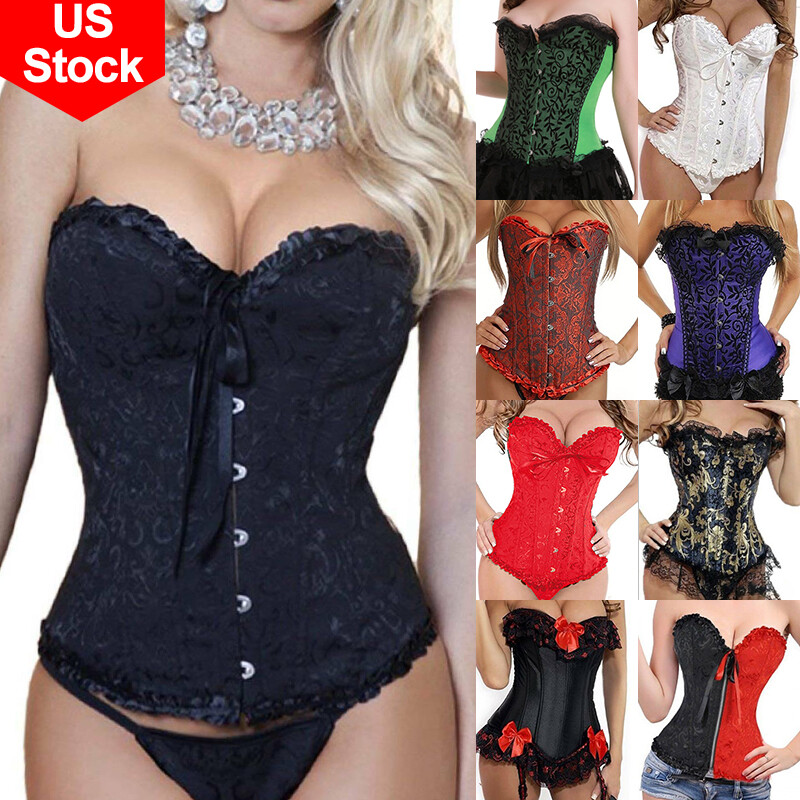 Women Lace Up Corset Bustier Shaper Waist Cincher Push Up Top Lingerie Plus Size