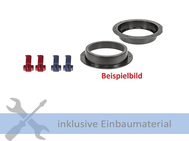 1 Paar Lautsprecherringe (= 2 Stück). Wenn ein Lautsprecheradapterkabel benötigt wird, ist dieses im Lieferumfang enthalten. Ansonsten legen wir Klemmverteiler bei, um die originale Verkabelung nicht zu beschädigen. | ||