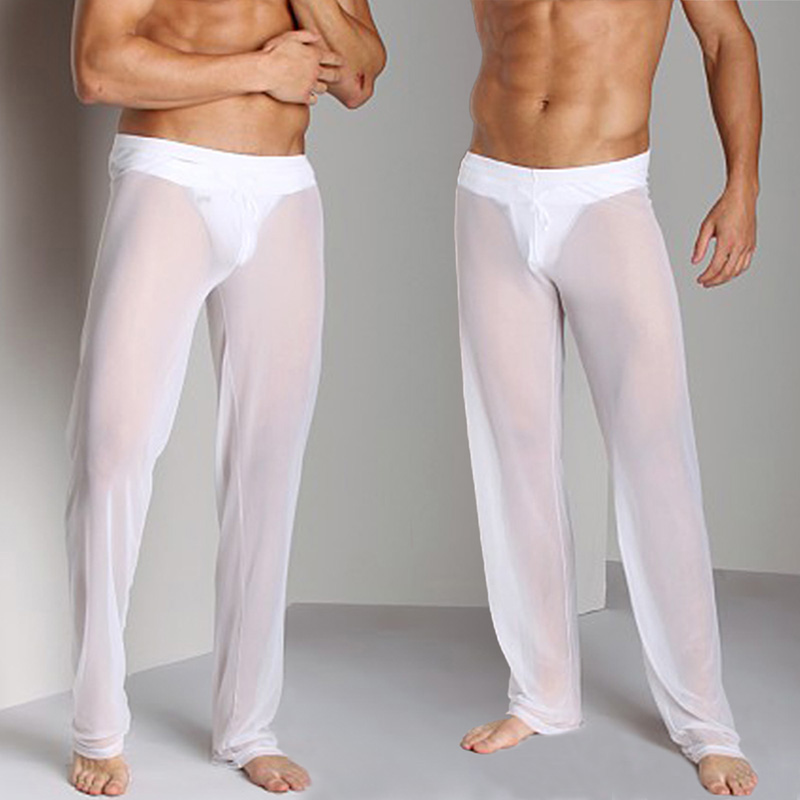 Mens Sheer Loose Long Pants Super Elastic Transparent Sleep Pajama Lounge Pant