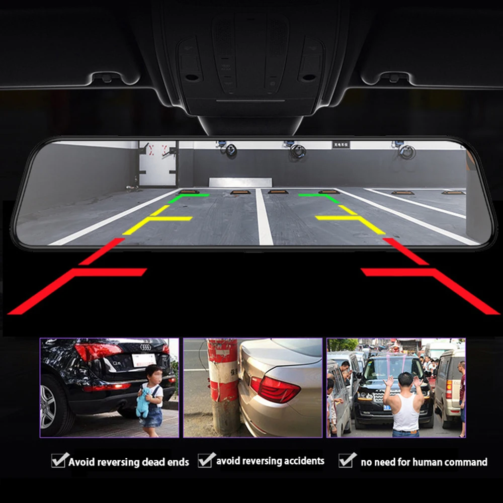 When the car in Reverse Gear, this car DVR will automatically switch to the back-up camera image view with parking line