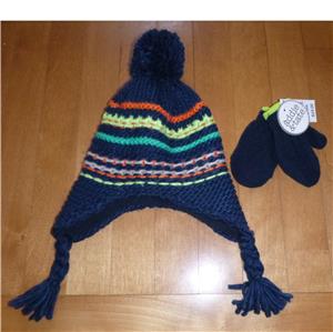 Baby Toddler Boys/Girls Peruvian Knit Fleece Lined Beanie Hat with Mittens