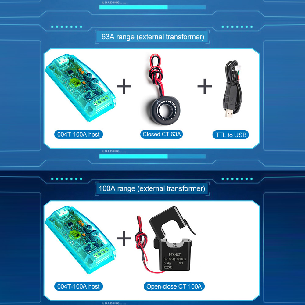 PZEM-004T-100A: Measuring Range 100A (external transformer)