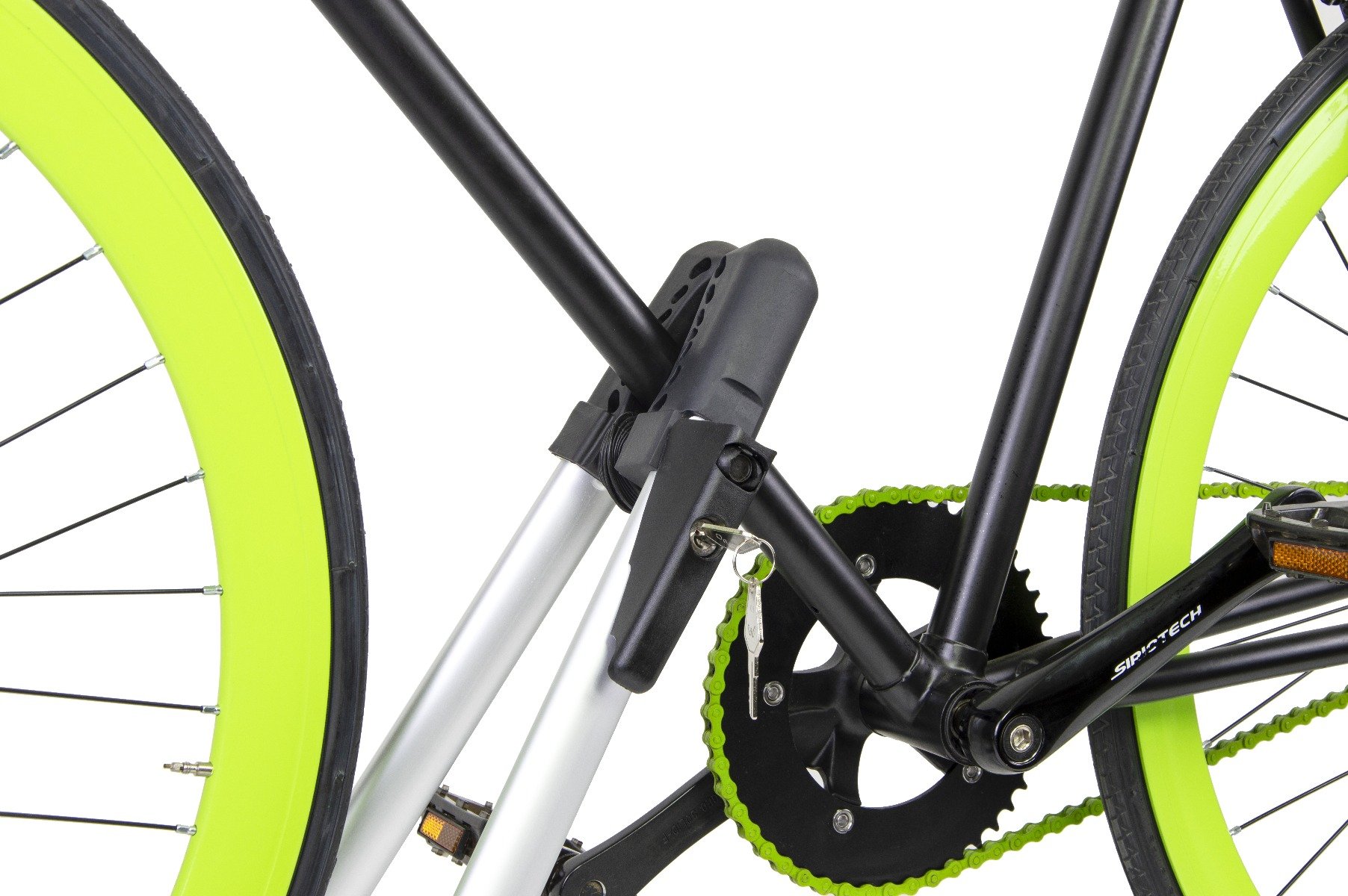 Portabici da tetto adatto a bici di grossa taglia, MTB e da corsa. Realizzato esclusivamente in alluminio e plastiche pregiate, e' progettato per rispondere ai piu' alti standard di sicurezza, senza tralasciare il design. Dotato di doppio sistema antifurto. Adatto a 1 bici dal peso massimo di 17 Kg. Kit di montaggio in dotazione idoneo a barre portatutto con canalina a ''T'' o sistema di fissaggio esterno alle barre (con optional codice 000122700000)