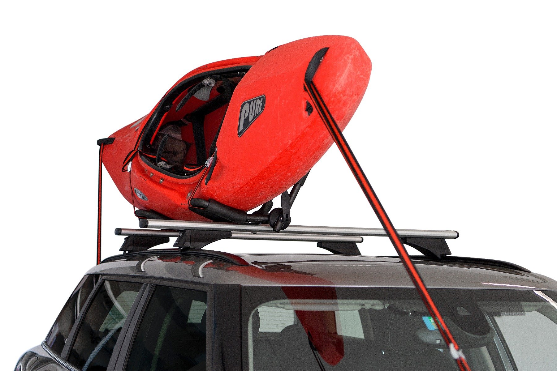 Porta kayak realizzato in acciaio, pratico e richiudibile. Si inclina fino a 100 gradi circa e pu' essere sistemato nella posizione desiderata in pochi secondi. Montaggio in canalina tramite sistema a ''T''. (Sistema di fissaggio opzionale per barre attacco ad ''U'' max 80x30mm con codice 000122300000 ). Portata max. 50Kg