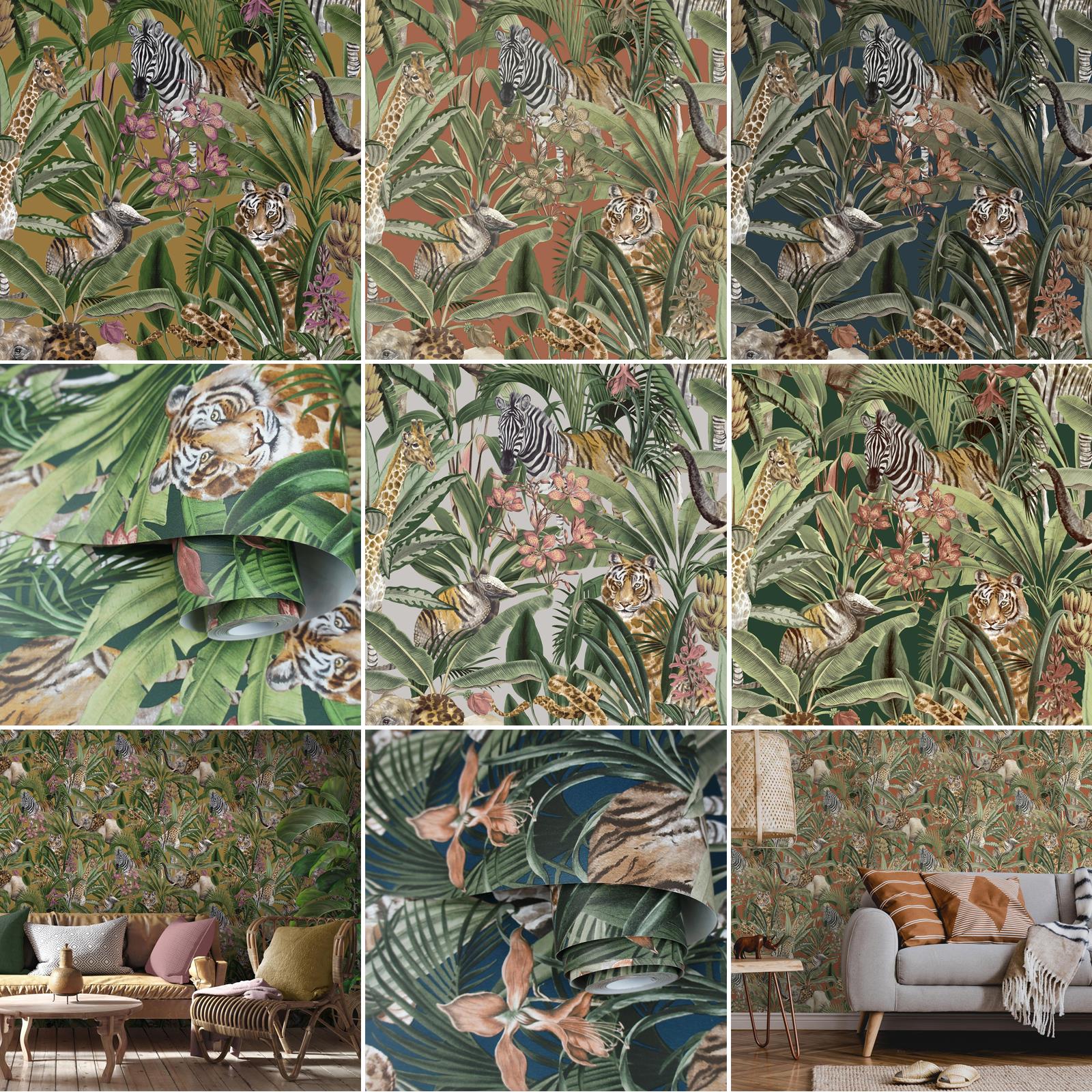 This Safari Animal Fusion Wallpaper is a fun and quirky animal themed wallpaper which is guaranteed to create an eye-catching statement in your home. The design features mismatched safari animals shown with opposing furs and skins, including giraffes, elephants, tigers, zebras, snakes and armadillos, surrounded by tropical leaves and plants in various shades of green as well as some pretty colourful foliage. This design is set on a background with a smooth matte finish. Easy to apply, this high quality wallpaper can be used to create a beautiful feature wall or to decorate an entire room.