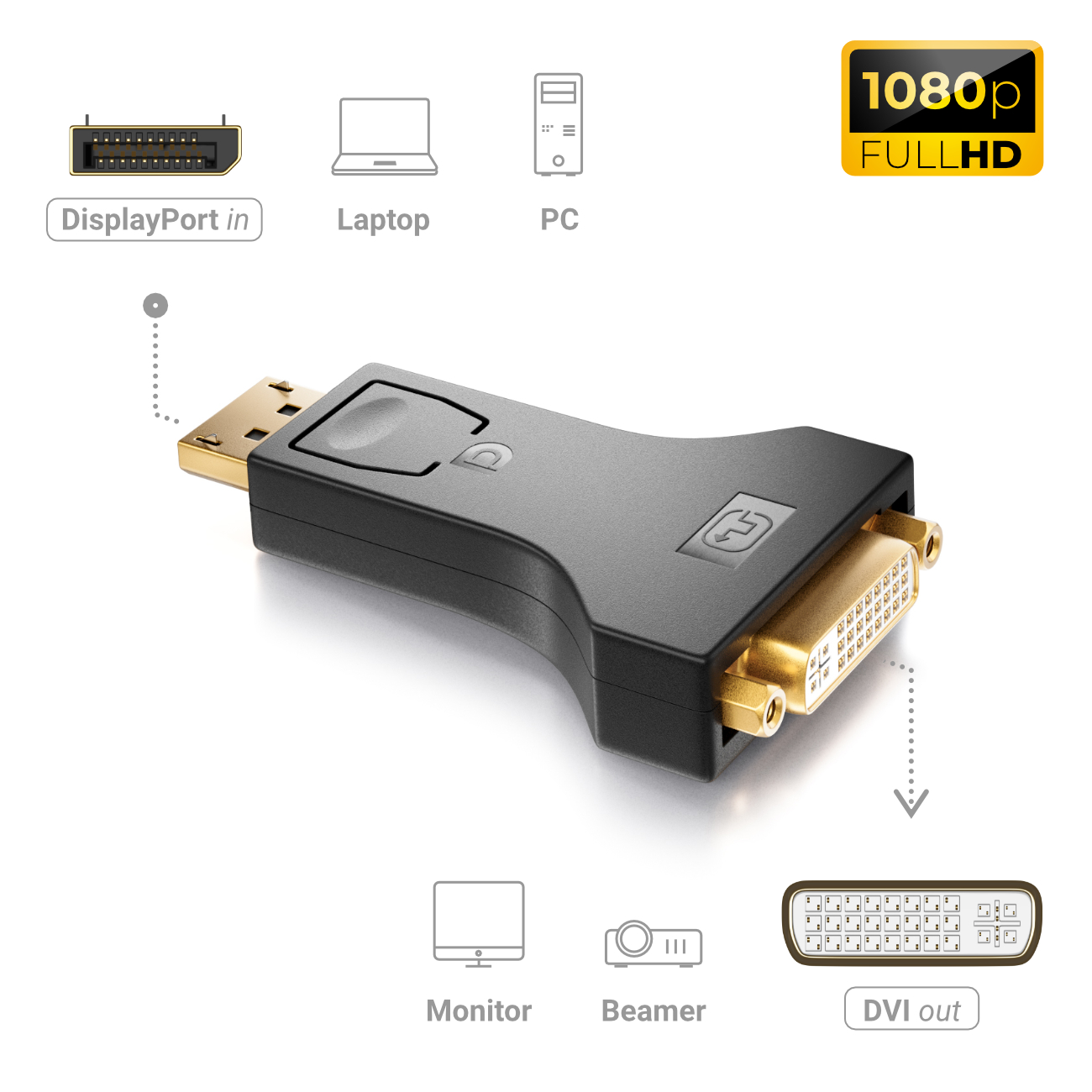 - deleyCON Displayport zu DVI Adapter