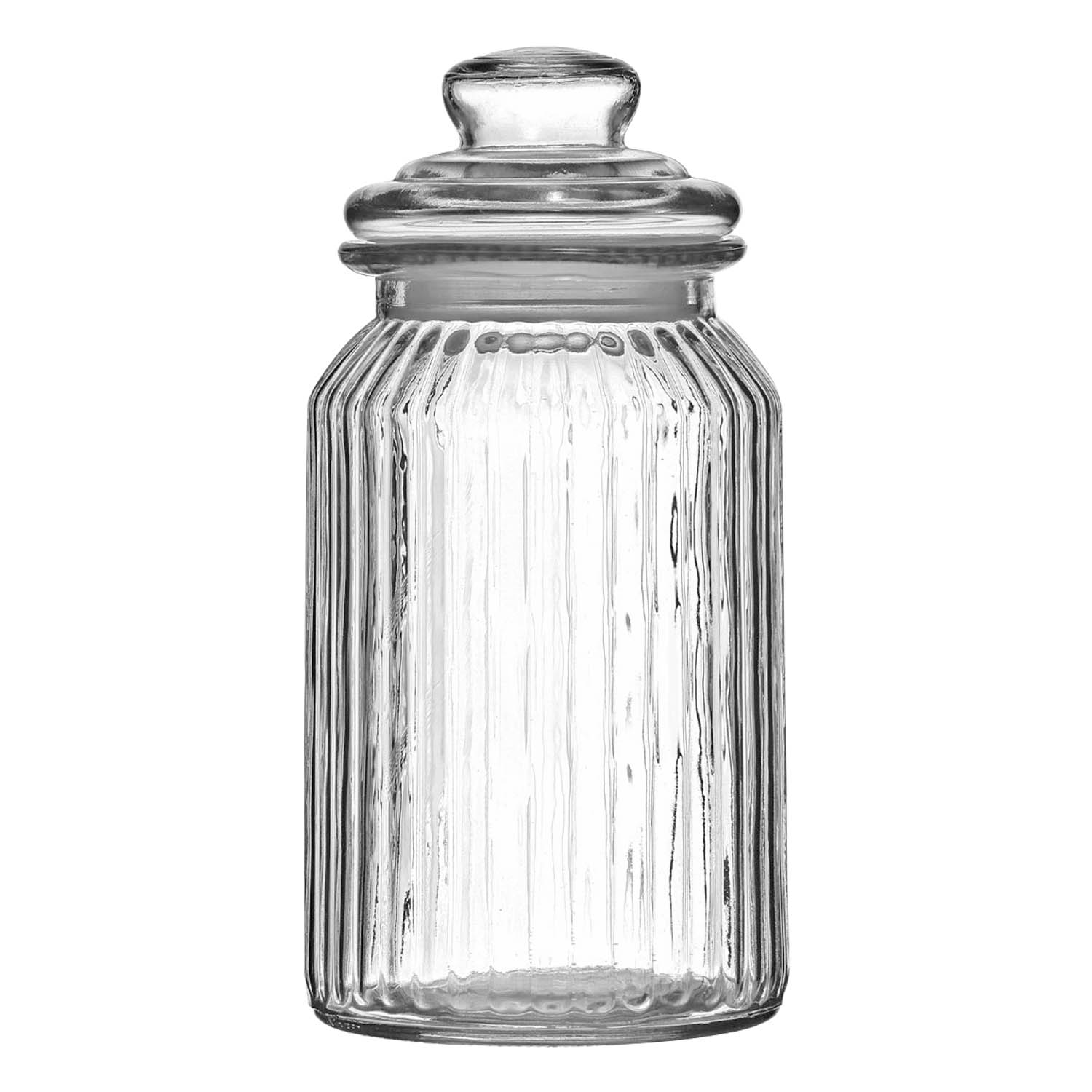 Perfect for keeping an organised and tidy kitchen, the glass jar and lid are ideal for storing tea, coffee, sugar, biscuits, pasta, rice and much more. The durable glass jar is enhanced by a ribbed design for a more aesthetically pleasing look in your kitchen. The lid features a rubber seal that will fasten securely helping to keep your contents fresh for longer. Complementing most decors, the stylish and practical glass jar will help to keep your kitchen clutter-free and your ingredients close to hand.