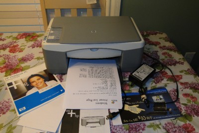 The scanner/copy glass has been windexed, free of any stains, streaks or fogs, pick up rollers are primed and tested to work great. However, INK, CD OR MANUAL NOT INCLUDED. Comes with a power supply if you need or ask for one before we ship.Comes with a power supply if you need or ask for one before we ship.