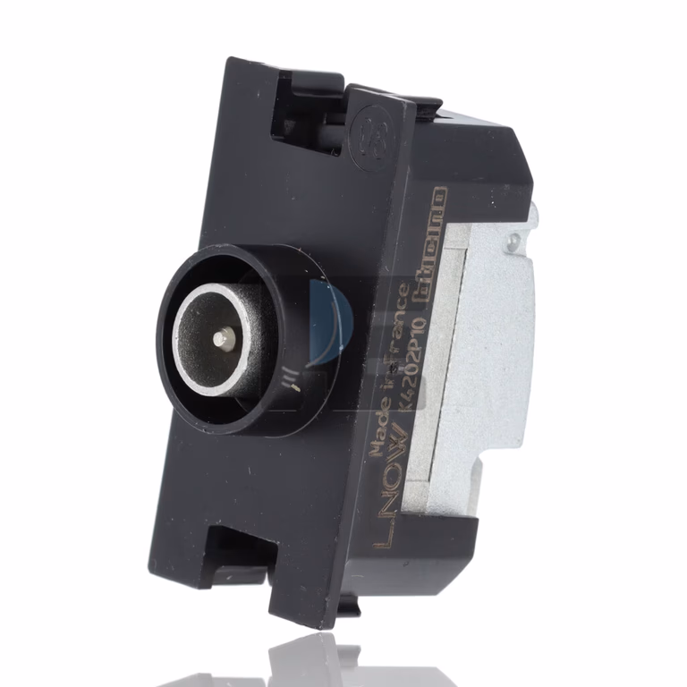 - Presa coassiale passante terminale per impianti di antenna e satellite centralizzati