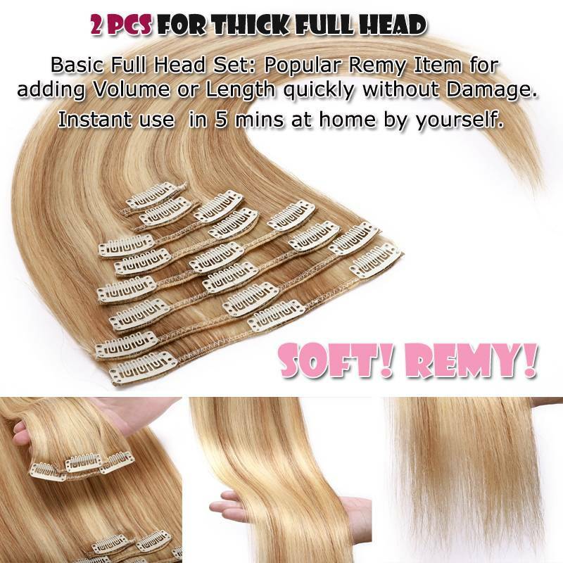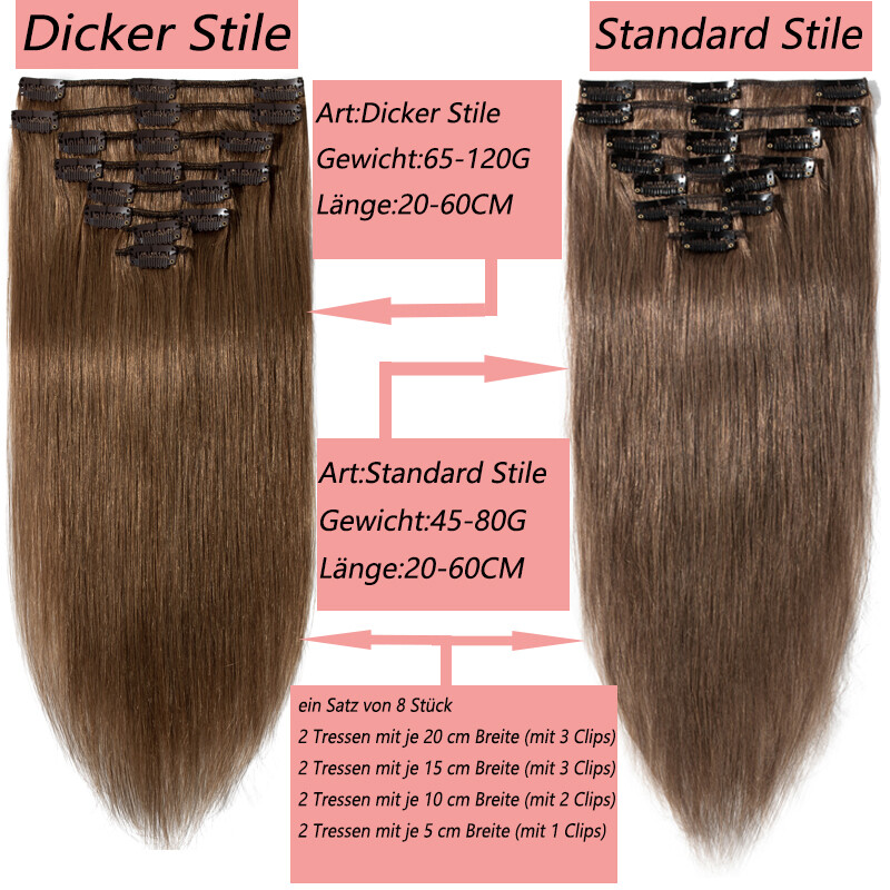 Haartyp:8 Tresssen mit 18 Clips-100% Remy Echthaar