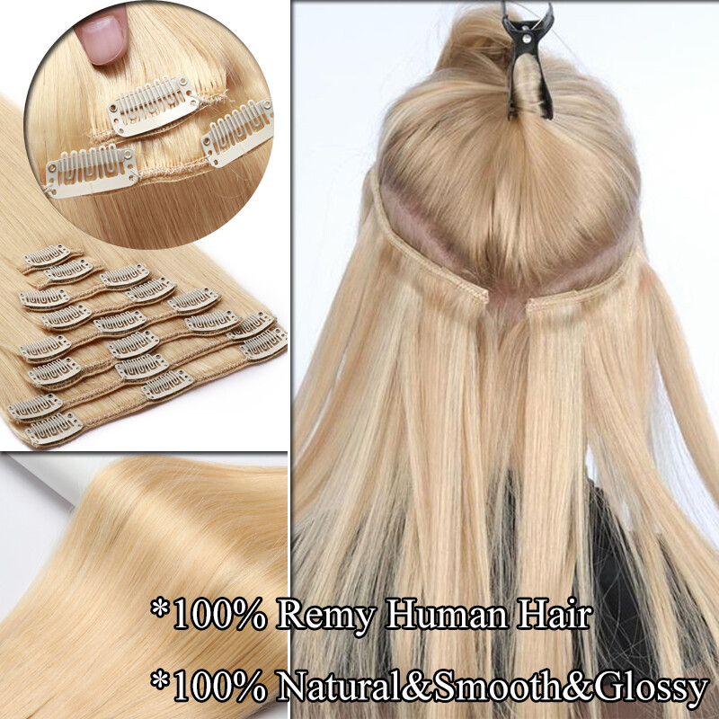 Dick Remy 100% Real Echthaar Clip In Hair Extensions Haarverlängerung 8 Tressen