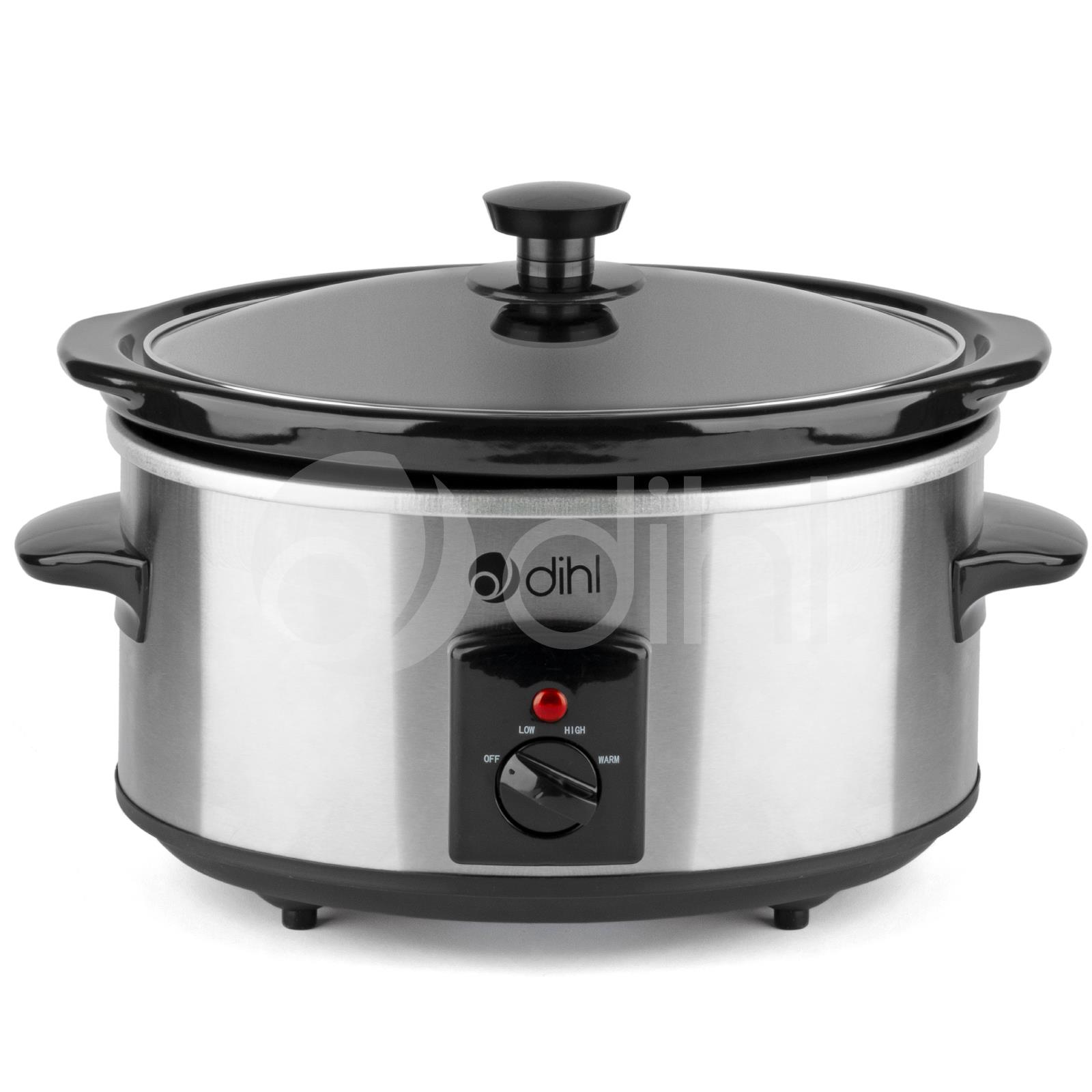 Dihl Slow Cooker 3.5L Removable Ceramic Pot Bowl Glass Lid Stainless Steel