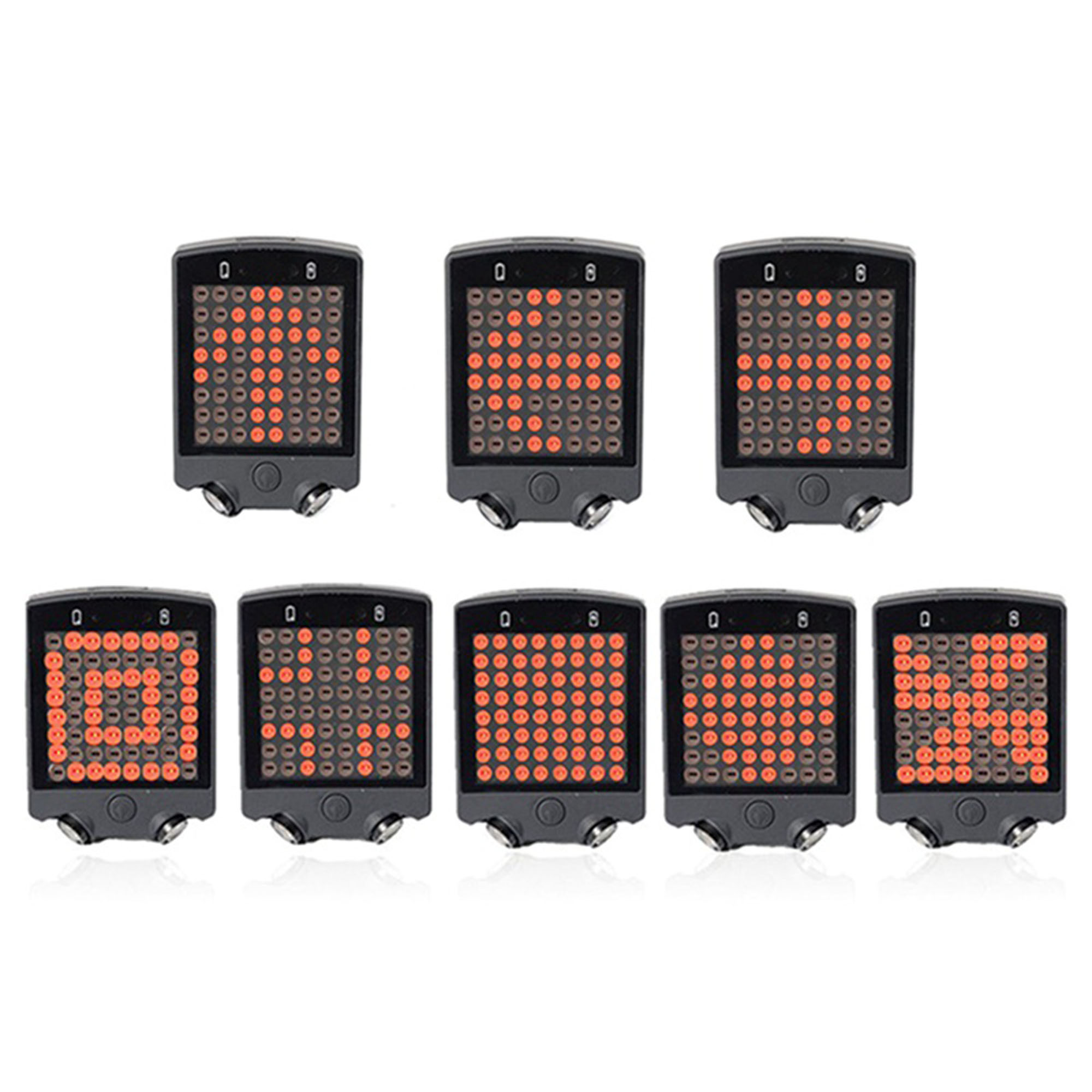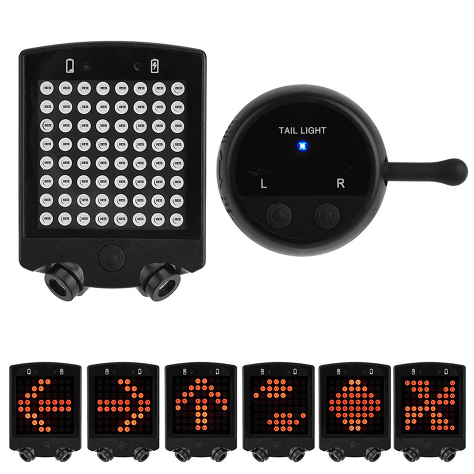 Various patterns of lighting, including turn left signal, turn right signal, brake signal.