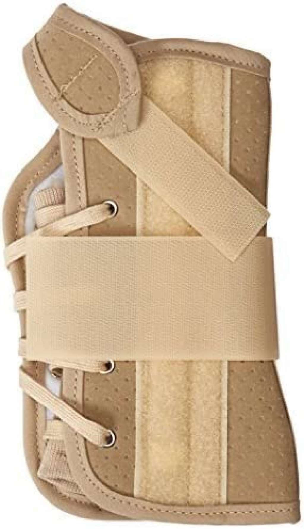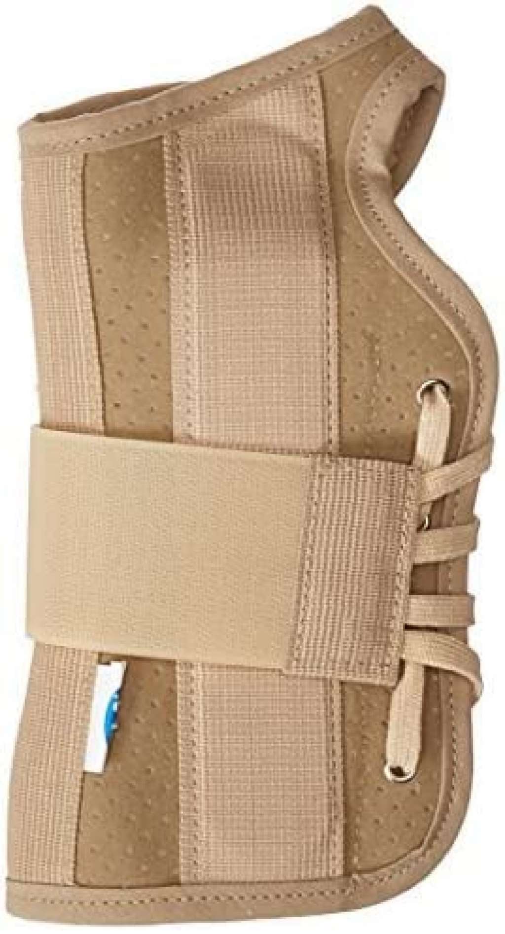 Brace has a metal palmar stay that is orthopedically designed to hold the wrist in the neutral, "cock-up" position and prevents flexion.
