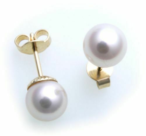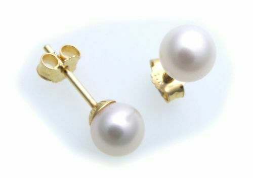 Sofort Kauf Damen Ohrringe echt Süßwasserzuchtperlen 6 mm Gold 585 Perle Gelbgold