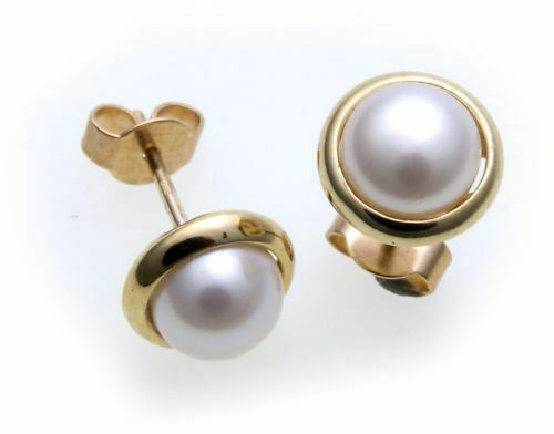 Sofort Kauf Damen Ohrringe echt Süßwasserzuchtperlen 6,5 mm echt Gold 585 Gelbgold Perlen