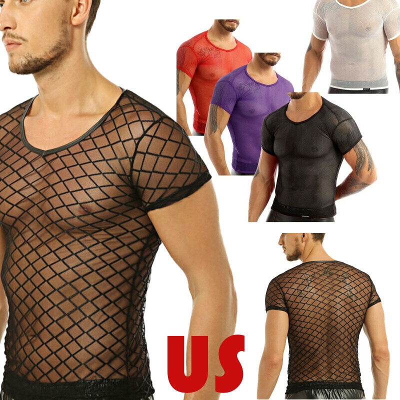 - Hot sexy mens casual stylish mesh shirts, V-neck, short sleeves.